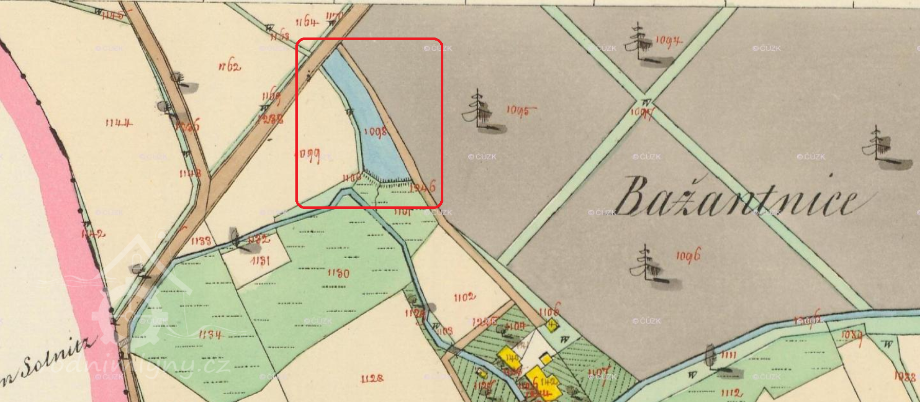 až do roku 1850 zde  existoval rybník, původně rezervní nádrž pro mlýn