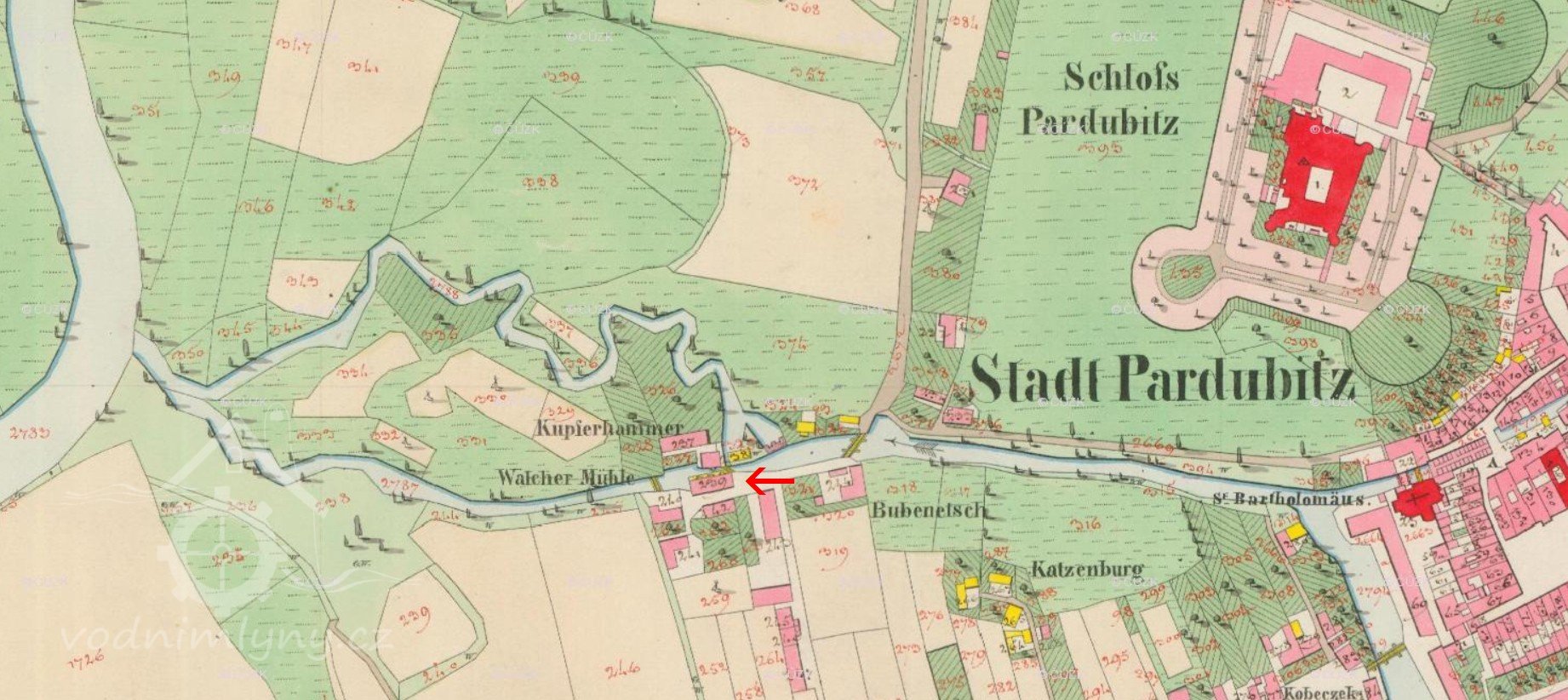 Obecní zastupitelstvo města Pardubic sešlo se dne 4.května 1910. Na koupi mlýnů císařského a „Valchy“ pomýšlelo se již před mnoha léty, zejména r. 1904, kdy při zavádění elektrického osvětlení zamýšlelo se potřebnou elektřinu vyrobiti soustředěnými silami obou těchto mlýnů. Avšak seznalo se, že síla obou těchto mlýnů k tomu účelu nestačí. Teprve v r. 1908 provádění regulace Chrudimky přivedlo otázku koupě mlýnů znovu v život. Byla sestavena zvláštní komice ku podání návrhů o získání a využitkování vodní síly na Chrudimce. K účelům regulace zakoupila totiž obec tři mlýny mezimostecké, jak pak regulací byly zabrány, a zbyla z nich obci pouze nadnormální voda o síle asi 25 HP. Tato síla sama o sobě by stála za využitkování postavením vodního díla.
