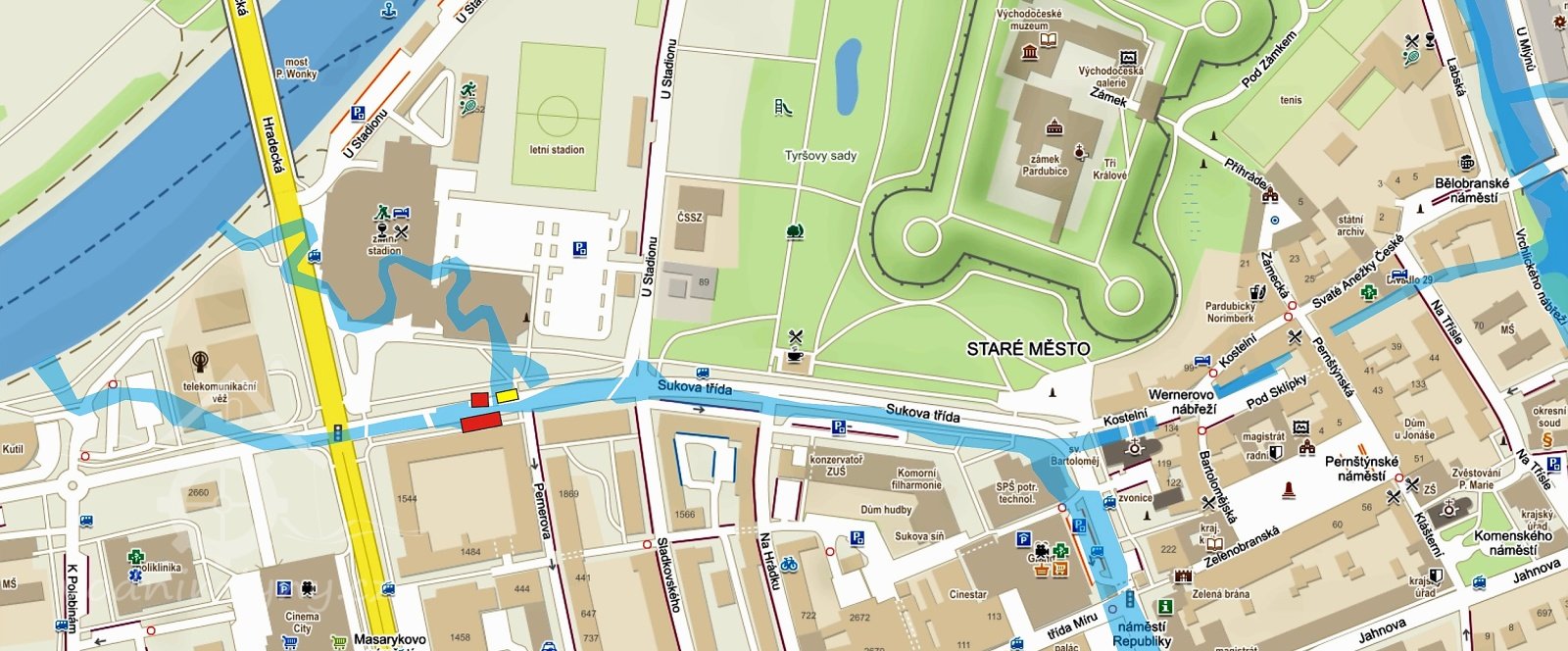 V souvislosti s regulací severního úseku Chrudimky probíhajícího v letech 1906–14 byl zasypán vodní příkop kolem historického centra a v roce 1910 byl