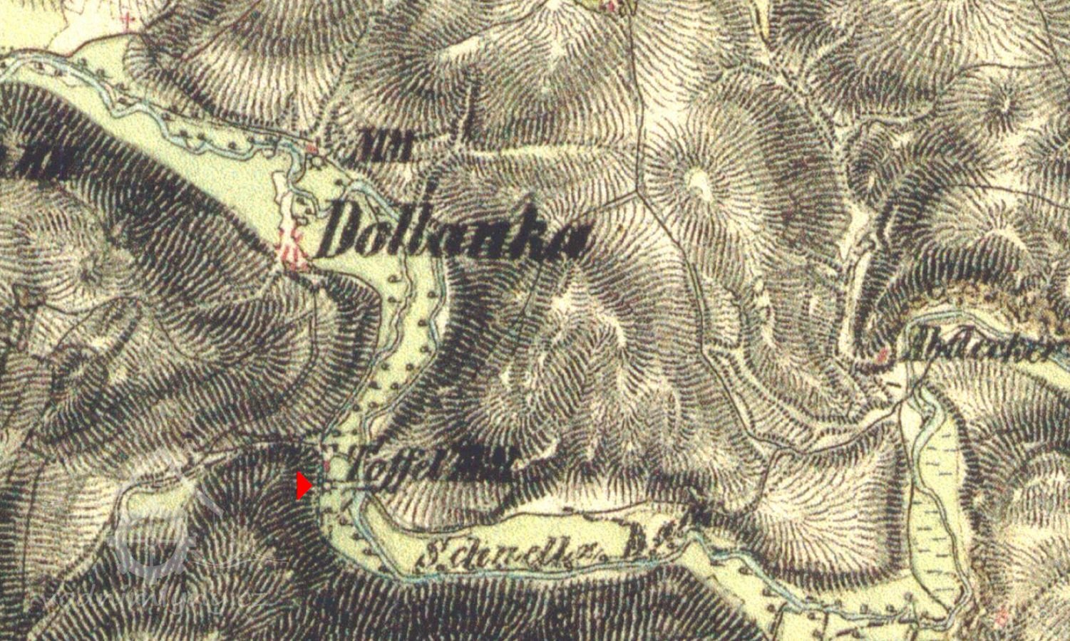 Vodní mlýn, nazývaný Toflův mlýn (Toffelmühle), byl vystavěn patrně již v 17. století podle návrhu neznámého architekta v údolí pod Černým lesem (Im Schwerzen Holz) na pravém břehu říčky Střely (Schnella Bach) asi 0,5 kilometru jižně od dnes již zcela zaniklé osady Dolánky (Dollanka). Roku 1789 byla osada Dolánky nově přifařena ke kostelu Navštívení Panny Marie ve Skokách, pouze Toflův mlýn zůstal nadále ve farním obvodu kostela Narození Panny Marie ve Štědré.