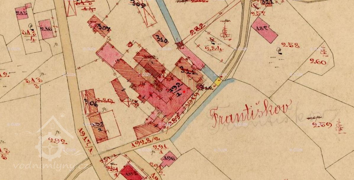 Mlýn přímo pod hrází rybníka, čímž docíleno extrémního spádu 12 m.