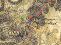 Na mapě I. vojenského mapováni je zakreslen Franzensthal - Pulwer Magazin a Kaÿ. (?, snad Kaiserhütte)