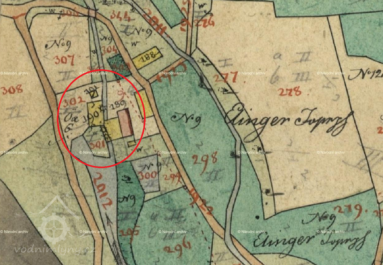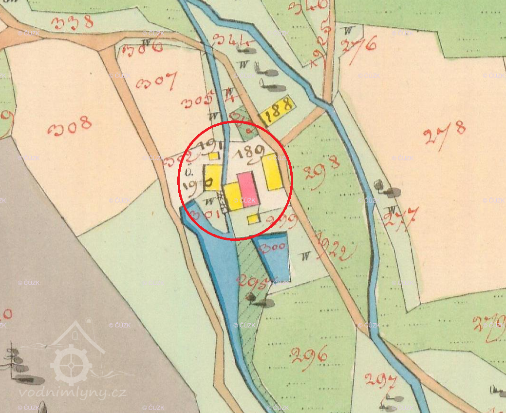 1798: šacunk mlýna: mlýnské verky na dvě složení z nového dříví zhotoveny, ale zatím nepostaveny na místo, vantroky staré, stavení rozbourané, stojí jen světnice ve s dvěma výstupky ve starém špatném stvu, chlévy pro dobytek v prostředním astvu, stodola sroubená ve šptném stavu. Nové roubení na mýna v něm jeden pokojíček celkem 8 sáhů délky a 4 a půl šířky ještě dodělané není a na svém místě ještě nestojí, lednice z části z nového a zčásti ze starého dříví roubená, sklep nově vystavěný, klenutý, v dobrém stavu.