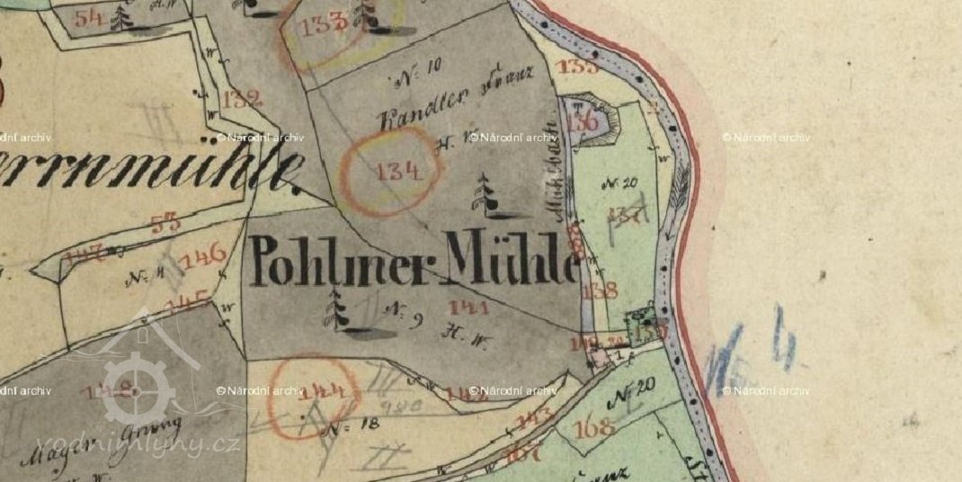 Polomský, Horní, Baronův mlýn; Obere, Baron Mühle