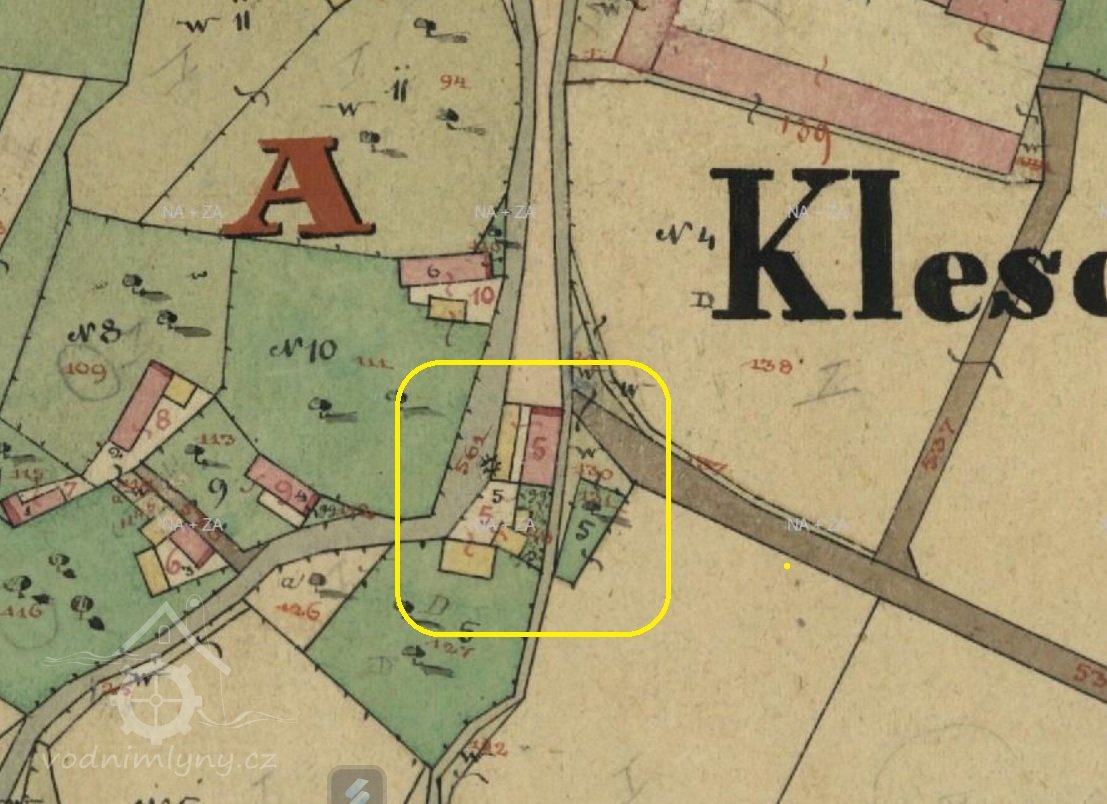 Mlýn středověkého původu stojí na jižním okraji obce Klešice, nedaleko soutoku Podolského potoka s potokem Konopka. Podolský potok se dříve nazýval Zlatý potok.