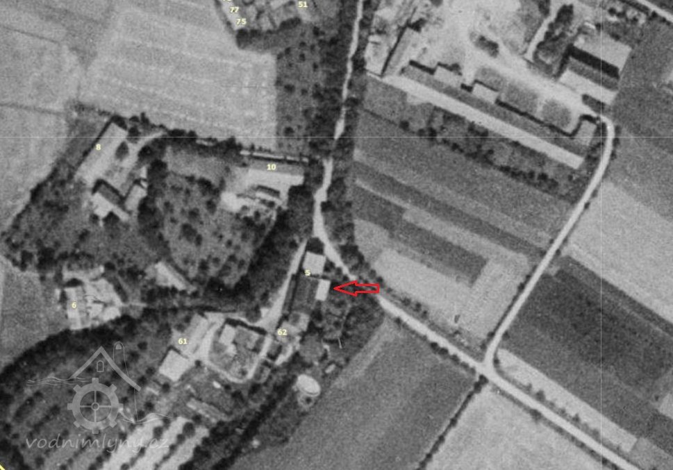 Náhon z Podolského potoka začínal asi 200 m nad mlýnem. Odtok od mlýna směřoval k dalšímu mlýnu v obci čp. 21 jako jeho náhon. Podolský potok se dříve nazýval Zlatý potok.