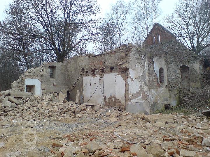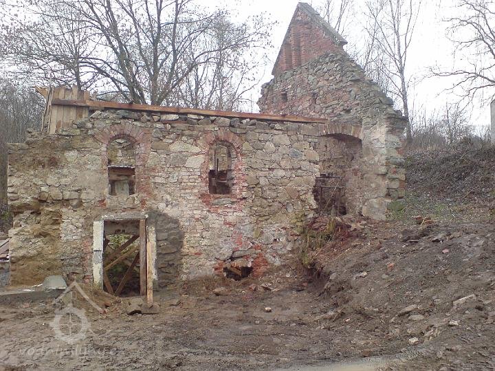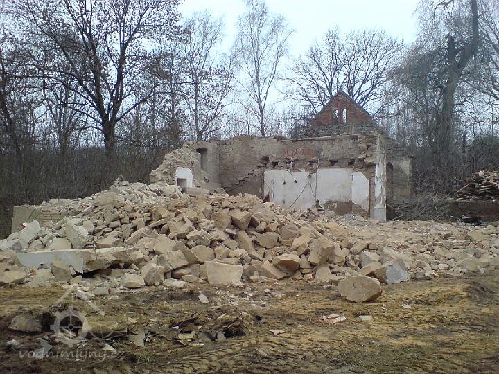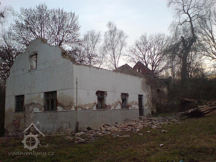 2008-2009 mlýnice a dům zbořeny, zachováno pouze sklepení