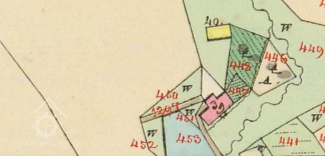 Popis1931: 1 kolo na svrchní vodu, hltnost 0,062 m3/s, spád 6 m, průměr 5,2 m, výkon 3,3 HP