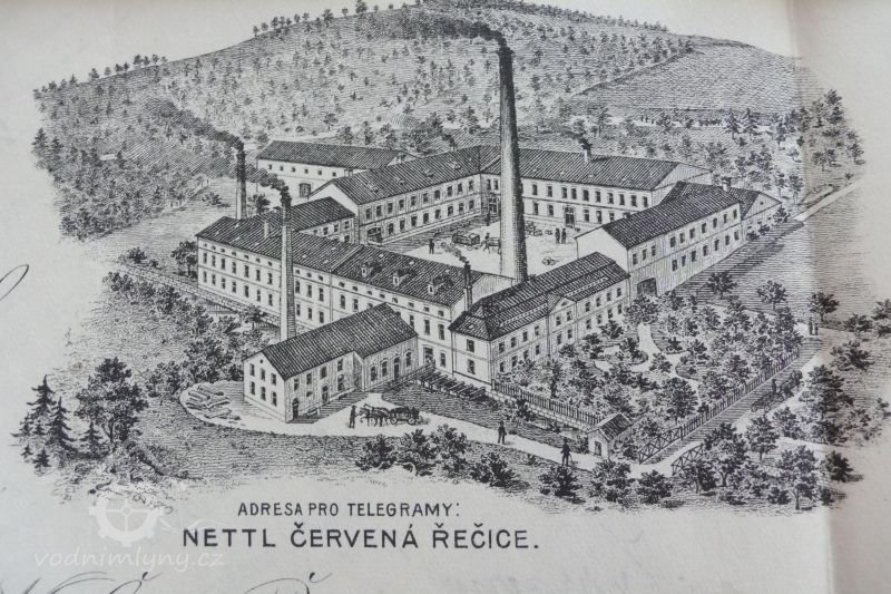 Ruční papírna vznikla adaptací staršího mlýna při řece Trnavě na tehdejších arcibiskupských pozemcích kolem roku 1675, jejím prvním nájemcem byl papírník Erhart Feldo (papírní mlýn na mletí hadrů je zmiňován v urbáři arcibiskupského velkostatku z roku 1746). Manufakturu roku 1850 koupili bratři Jakub (1818–?) a Ignác Spirové (1817–1894) a v následujících letech ji přeměnili na strojní papírnu. Hlavou podniku byl Jakub, který roku 1853 zařídil parní stroj na topení dřevem, koupil nedaleký mlýn na Želivce (Želiv-Lhotice čp. 22 49°33'35.49"N, 15°14'35.70"E), ke kterému zvýšil spád vody a vybudoval tam brusírnu, odkud vozil dřevěnou drť do červenořečické papírny. Továrna vyráběla hlavně obalový papír na cukr a zaměstnávala až šedesát dělníků. Po požáru v roce 1858 byla papírna obnovena zhruba do dnešní podoby uzavřeného čtyřkřídlého areálu. Severní reprezentativní patrové křídlo s vjezdem a štítem s hodinami nad ním obsahovalo kanceláře a obytnou část, vlastní továrna se nacházela v jižním a východním traktu při náhonu u Trnavy, na nádvoří stála kotelna s komínem, v západní části byly sklady a dílny. Roku 1860 Ignác Spiro z firmy odešel a zahájil vlastní podnikání v papírenském mlýně pod Českým Krumlovem (Větřní). Ještě v roce 1862, pod názvem Jakob vormals Gebrüder Spiro Papierfabrik, zaměstnávala továrna přes stovku lidí, postupně se ale zadlužovala, roku 1878 skončila v exekuci a poté několik let vůbec nepracovala. Roku 1890 papírnu koupil Emanuel Vodička (provozoval turbínu 30 HP) a o pět let později ji prodal bratrům Isidorovi (1866–1921) a Karlovi Nettlovým. Ti zlepšili strojní vybavení a začali s produkcí balicích papírů na sáčky. Karel měl tiskařskou koncesi (k roku 1897 vystoupil z firmy), vyráběly se také obaly s přetiskem např. pro lékárny. V letech 1910–1911 firma Červenořečická strojní továrna na papír, Isidor Nettl, zahájila výrobu surové krycí lepenky a izolačního papíru (asi 1 600 tun ročně), a za tím účelem pořídila nové strojní zařízení i pohon. Vybavení dodala První brněnská strojírna, starší Francisovu turbínu nahradila větší o výkonu 105 HP, firma Ant. Dvořák & K. Fischer v Letkách u Libčic nad Vltavou postavila nový komín 35 metrů vysoký. Projekt železniční dráhy, která měla spojit Červenou Řečici s Humpolcem a Pelhřimovem, se neuskutečnil, což rozvoj papírny značně omezovalo, od roku 1914 užívala, jako první v okrese, nákladní automobil značky Büsing. Po rozpadu monarchie ztratila firma část odbytišť, Benno (1896–1944) a Oskar (1901–?) Nettlové, kteří ji vedli od roku 1921, proto na nových strojích rozšířili výrobu jednostranně hladkých papírů a tenkého tzv. kloboukového papíru. V letech 1931–1932 byla postavena východním směrem nad řekou budova celulózky (podnikatelství staveb Antonín Schreyer, Pelhřimov) a čistírna odpadní vody podle projektu vodohospodářského inženýra Vincence Hlavinky (1862–1934), profesora brněnské techniky. Pohon závodu roku 1934 doplnila parní turbína, v roce 1937 přibyl nový papírenský stroj č. 4 (výrobní šíře 200 cm), vyráběl tzv. havana, papír na balení uzenářských výrobků, nepropouštějící mastnotu. Továrna měla tři stovky zaměstnanců a pobočku v Pacově. V roce 1938 se Oskar Nettl musel z rasových důvodů vzdát funkce náměstka starosty města Červená Řečice a v prosinci 1939 převzala továrnu Pražská a. s. pro průmysl papírenský, vyrábělo se i za války. V roce 1946 byl sice podnik Oskarovi vrácen (Benno zahynul v Terezíně), dva roky nato byl ale znárodněn a převeden pod n. p. Jihočeské papírny ve Větřní. Papírenská výroba postupně přešla na sortiment papíru pro hygienu (toaletní papír, skládané ručníky, zdravotnické podložky). V šedesátých letech byla po požáru obnovena závodní kotelna včetně zauhlovacího mostu, továrna se dále přestavovala a rozšiřovala severním směrem (sklady, čistírna, čerpací stanice), další její rozšíření nastalo po organizační přeměně podniku na akciovou společnost v roce 1992. Je stále v provozu, na historickou strojní papírnu upomíná zámecká dispozice areálu s řadou zachovaných detailů. Nedaleko papírny překonává říčku Trnavu tříobloukový kamenný silniční most (Křelovice 49°31'47.20"N, 15°10'17.28"E), postavený pravděpodobně v souvislosti s dopravními potřebami závodu koncem 19. století.
