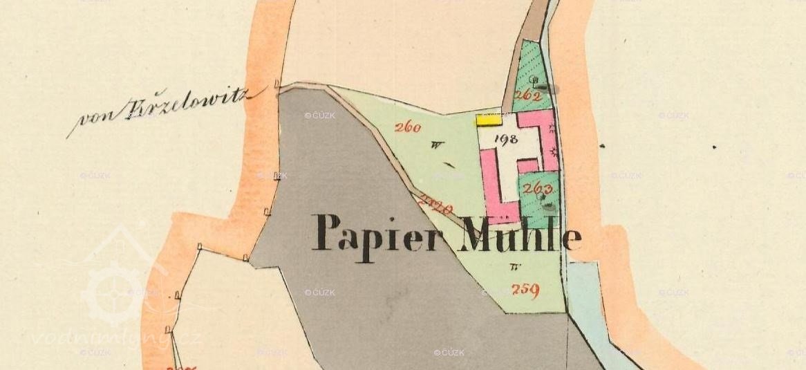 Severně od Červené Řečice při silnici č.112 stojí objekty papírny. V almanachu vydaném v roce 1975 při příležitosti 300. výročí vzniku papírny se uvádí: "Její vznik můžeme bezpečně datovat již před rok 1675; bez pochyby vznikla adaptací předchozího mlýna..."