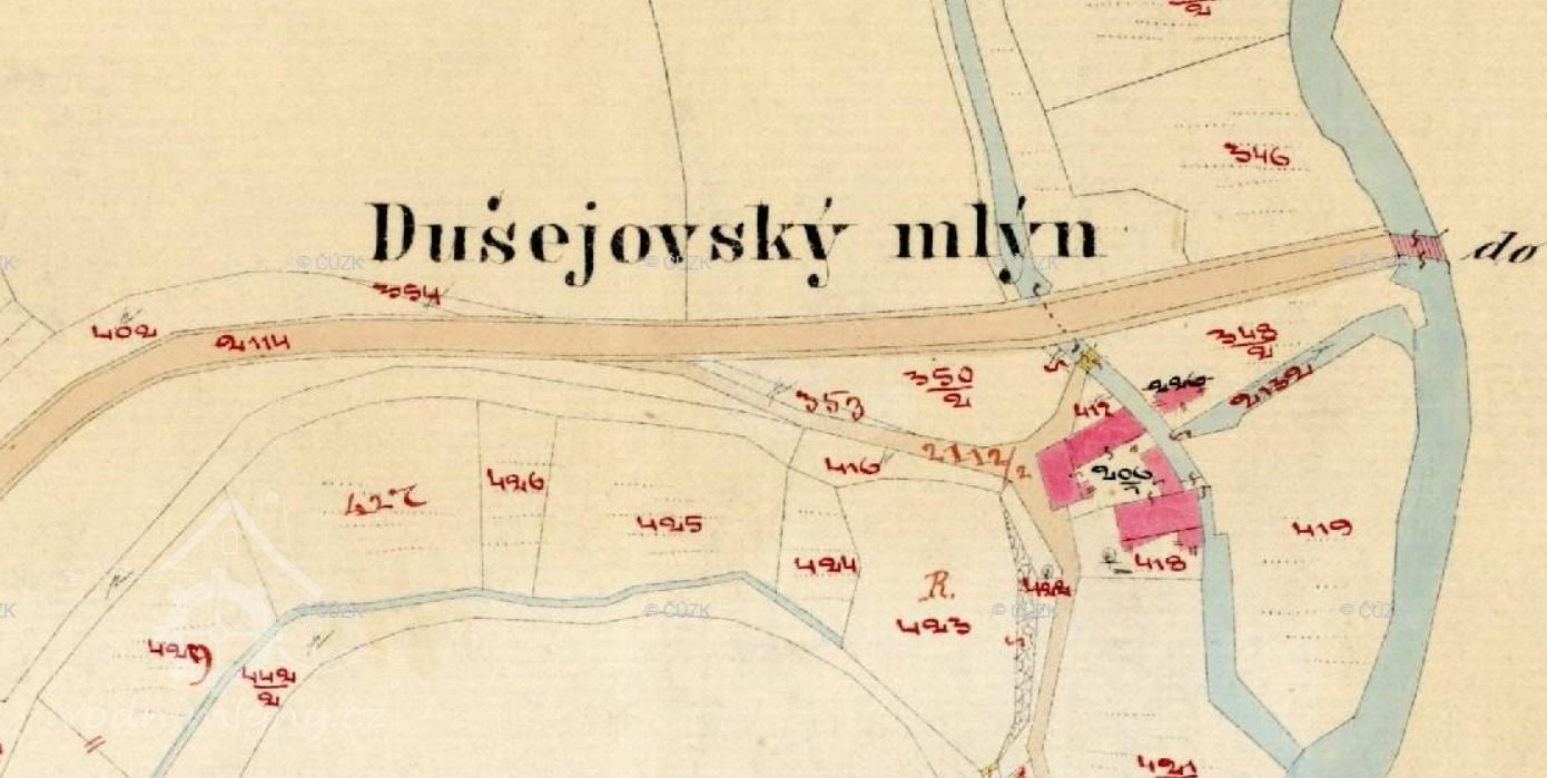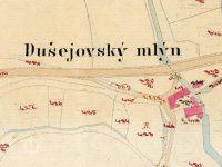 Na pravé straně silnice z Červené Řečice do Želiva a pravém břehu vodní nádrže Trnávka stávaly budovy Dušejovského mlýna. V matrikách jsou prokazatelné zápisy z poloviny 18. století, ale mlýn může být starší. Mlýn býval panským mlýnem, měl až 3 vodní kola, která poháněla mlýnská složení a pilu. Později je nahradila Francisova turbína. Zánik mlýna je spjat s výstavbou vodní nádrže Trnávka v letech 1977 - 1981. V současnosti stojí v místech mlýna chatky prý potomků posledních mlynářů.