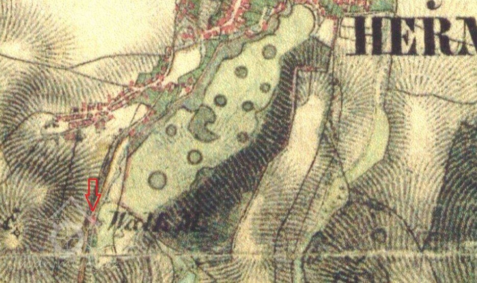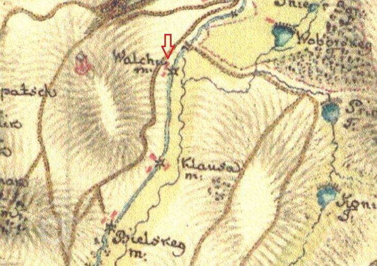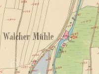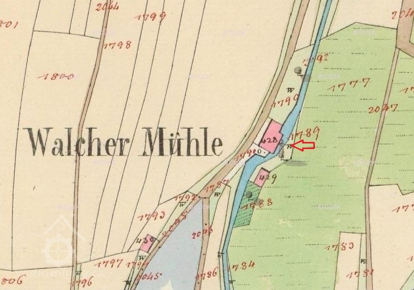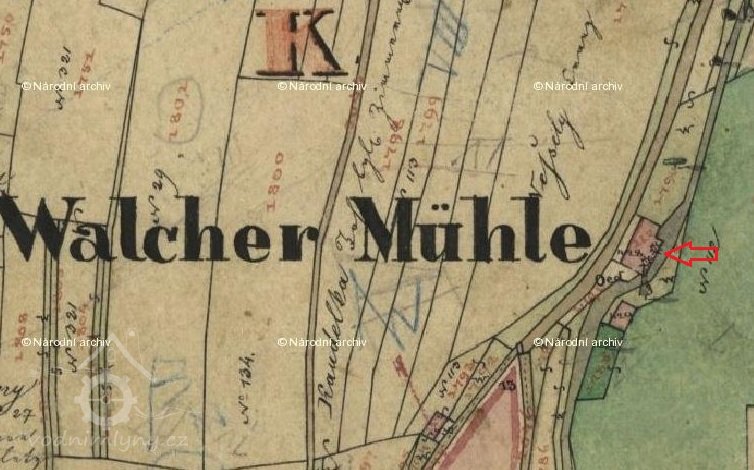 Na mapách stabilní ho katastru z roku 1839 je mlýn nazýván Walcher Mühle. Tehdy k němu patřily rozsáhlé pozemky na obou stranách Podolského potoka.