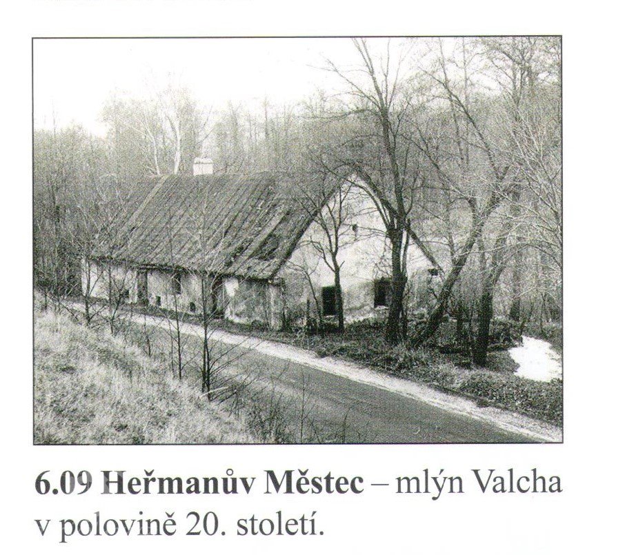 Koncem padesátých let minulého století jsme jej jako kluci prolejzali ( už byl bez obyvatel ), ale stále ještě v něm byla zachována velká část vybavení. Podle asi posledního provozovatele se mu tehdy říkalo Kynčlův mlýn ( "Kynčlák" ). V 60.tých letech neobývaný objekt rychle chátral, vyhořel a někdy po r. 1970 byl už jako ruina odstraněn při úpravách silnice do Kostelce u H. Městce. Fotografii mlýna Valcha zhotovil p. J. Tomiška z Heřmanova Městce, datována je 1962/VI a zachycuje pohled na mlýn od SSZ. (Rostislav Veselý)