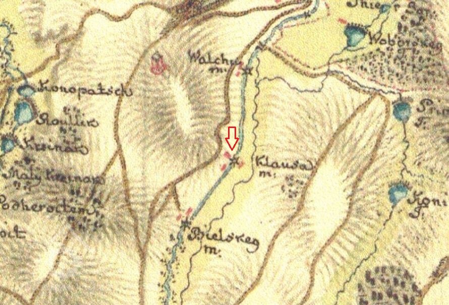 Mlýn je vyobrazen na I vojenském mapování z let 1764-1768.