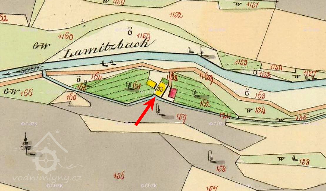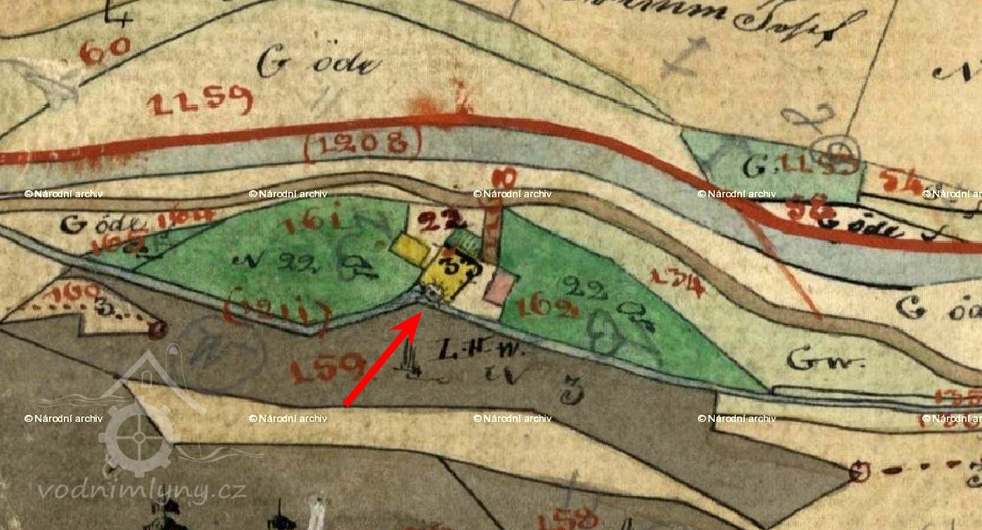 Popis1930: 1 kolo na svrchní vodu, hltnost 0,07 m3/s, spád 4,5 m, výkon 2,5 HP