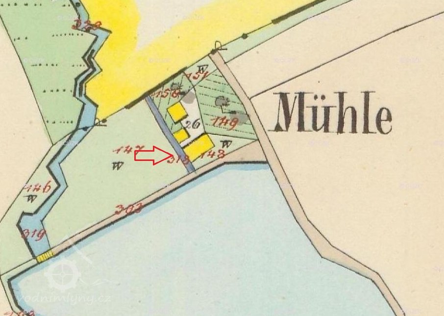 V roce 1930 měl mlýn jedno vodní kolo na vrchní vodu, hltnost 0,118 m3/s, spád 3,3 m, výkon 3,5 HP.