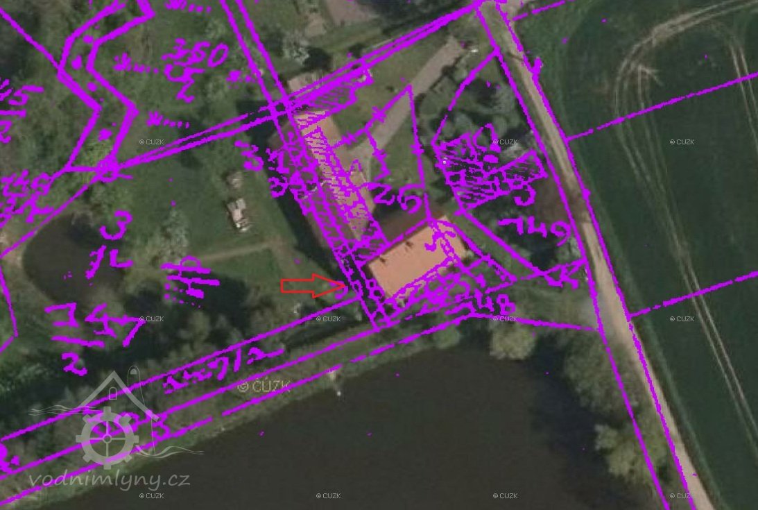 Mlýn stojí pod hrází Pouchobradského rybníka. Rybníkem protéká Markovický potok nazývaný dříve Lhotecký.
