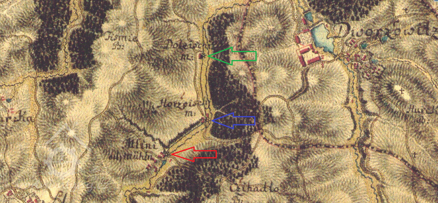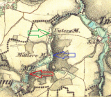Na stejném náhonu jako dolejší mlýn, akumulační nádržka dnes vypuštěna.