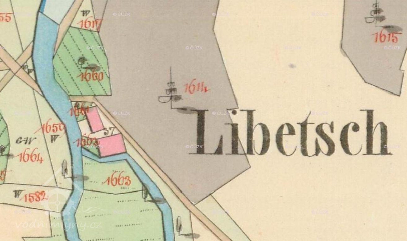 1930: 1 kolo na svrchní vodu, hltnost 0,194 m3/s, spád 2,9 m, výkon 4,9 HP