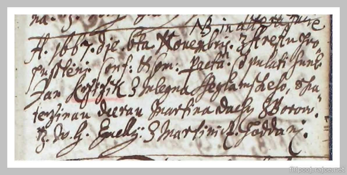 1667 - svatba Jana Křižíka z Chejlavského mlýna. Jan Křižík byl z rodu vynálezce Františka Křižíka.