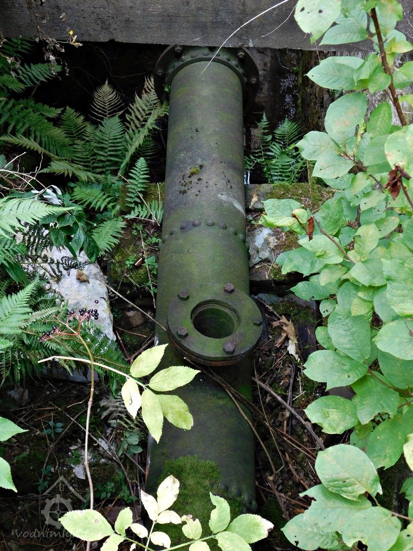 Dolní náhon (odtok) 25 m dlouhý, 80 cm široký.