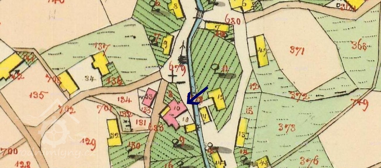 1757 Tereziánský katastr: 1 poddanský mlýn o 1 kole na nestálé vodě