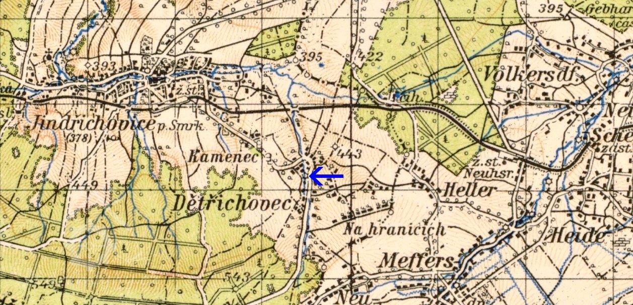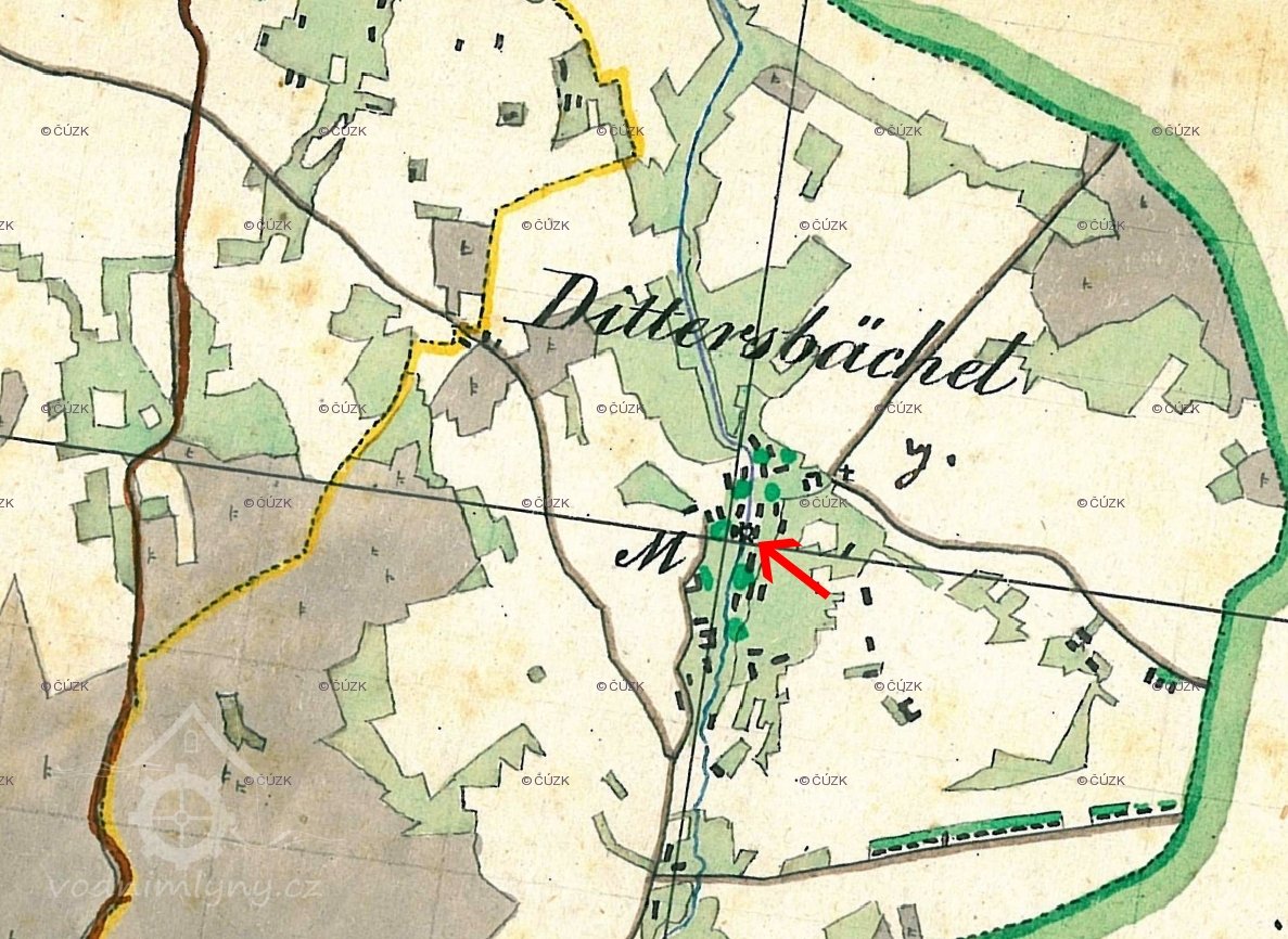 Bývalý mlýn v intravilánu obce Dětřichovec (Dittersbächel). Dnes slouží k obytným účelům.