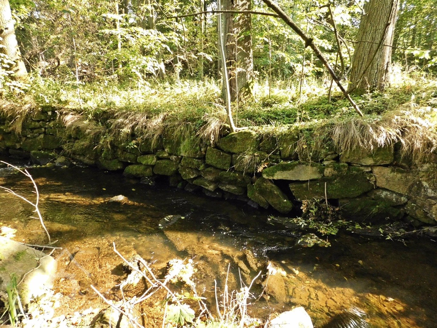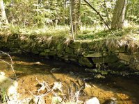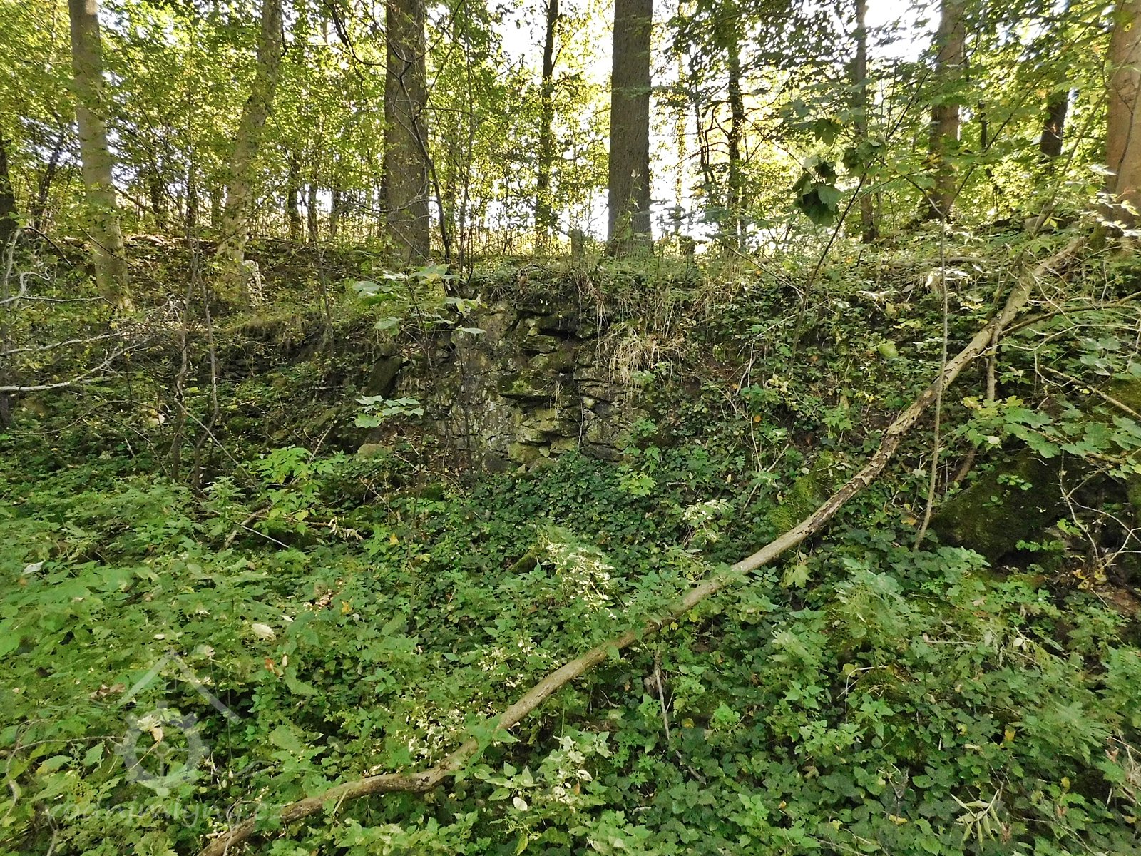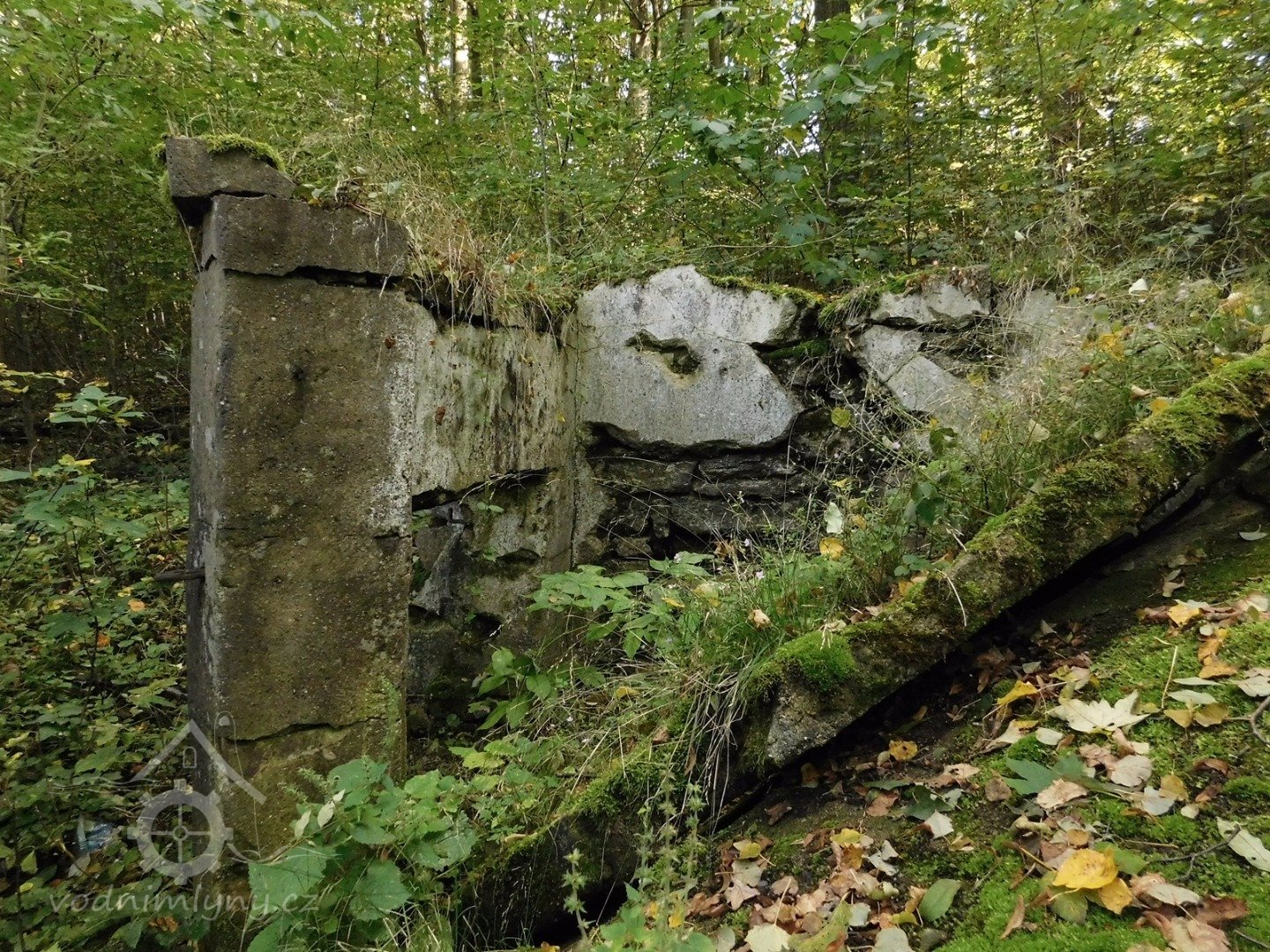 Zničený mlýn v údolí za Jindřichovicemi. Dnes zarostlé místo s relikty mlýna.