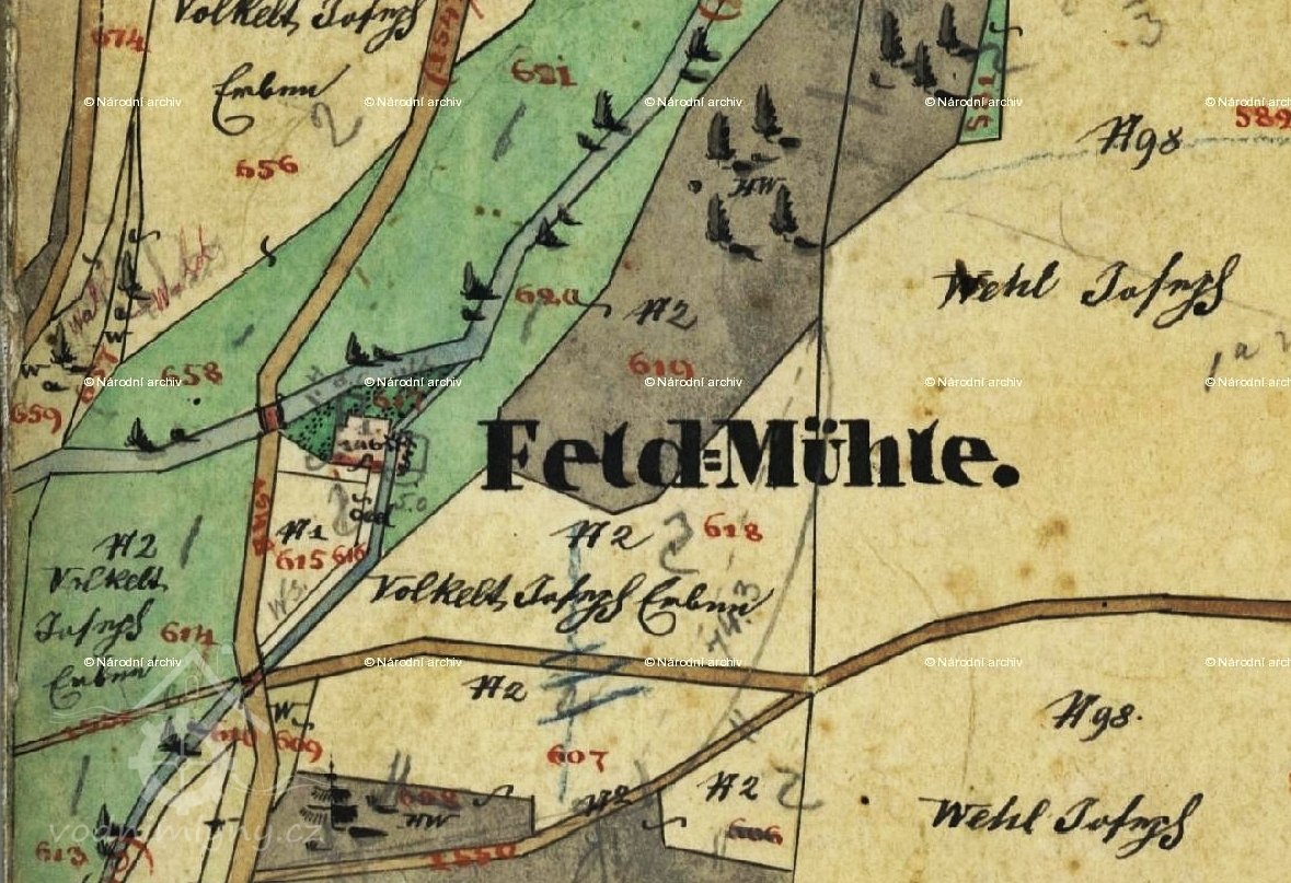 1757 Tereziánský katastr - v Jindřichovicích 2 poddanské mlýny