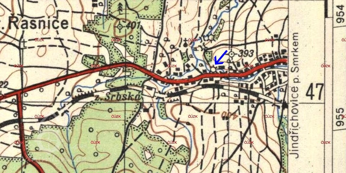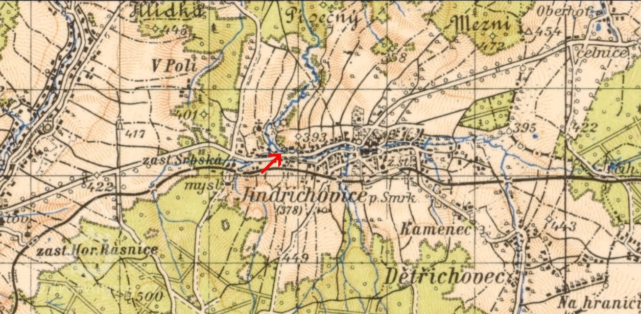 1757 Tereziánský katastr - v Jindřichovicích 2 poddanské mlýny