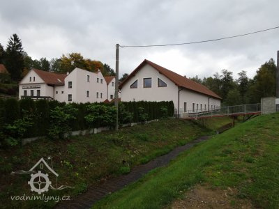 Jedno vodní kolo, korečkové na svrchní vodu s dvěma věnci.