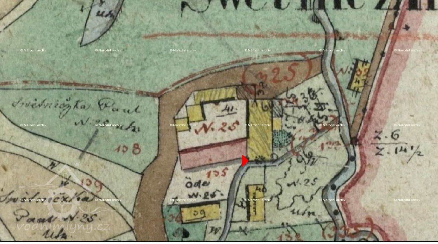PopisV r.1930 jedno vodní kolo na svrchní vodu o hltnosti 0,097 m3/s, spádu 3,7 m a výkonu 2,53 ks