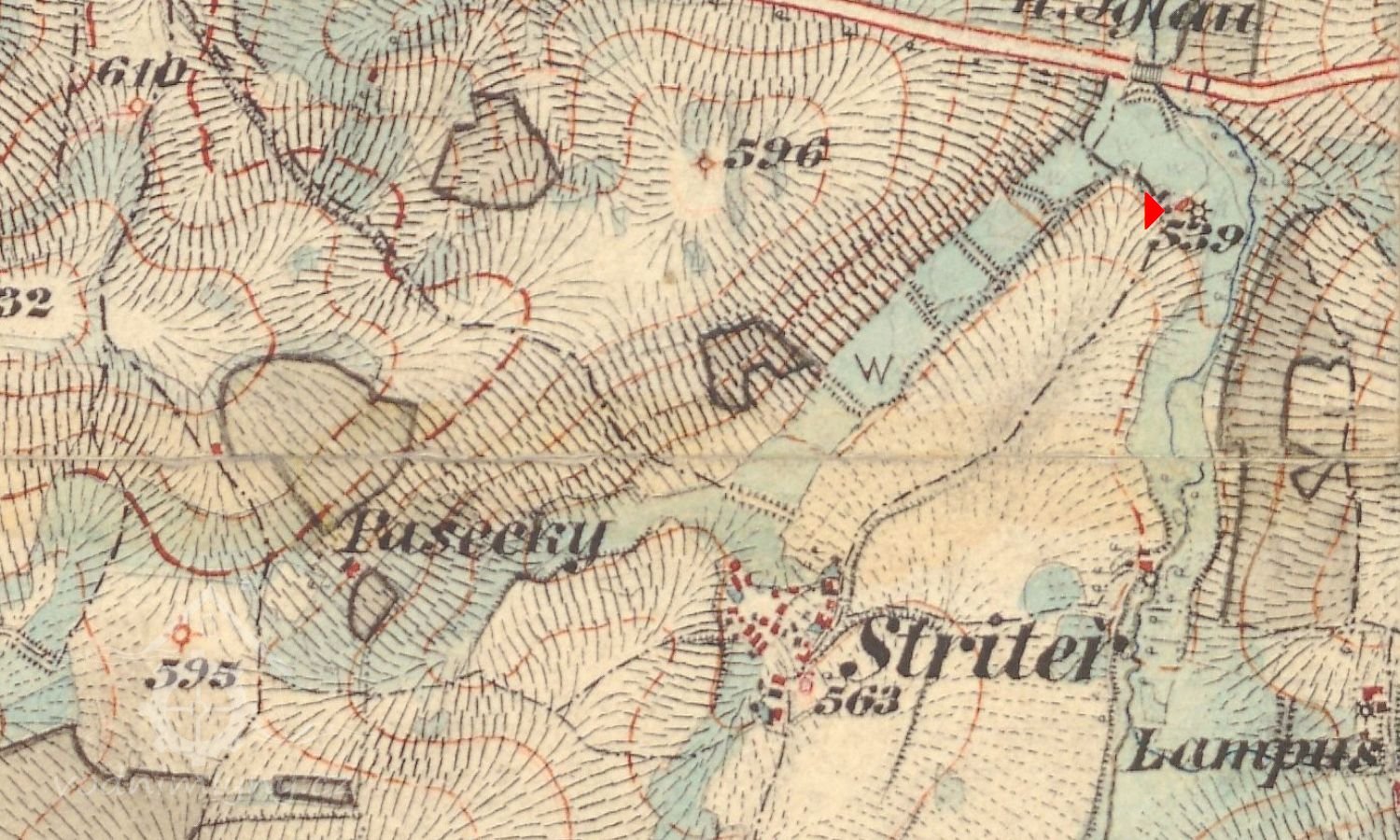 Od hořejšího mlýna ve Stříteži čp.20 přichází voda potokem, jenž se při mlýně rozšiřuje v malou mlýnskou nádržku bez stavidel. Vantroky jsou 5 m dlouhé, 1 m široké a 60 cm hluboké se 2 žlaby, z nichž ten na mlýnské kolo je 38 cm a ten na stupní kolo 30 cm široký. Ve vantrokách ve dně je otvor k vypouštění vody naprázdno.