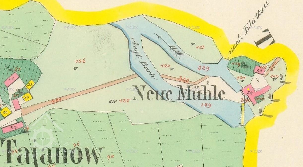 Mlýn Nový také zvaný Hůvnovský se nacházel na řece Úhlavě u Tajanova.