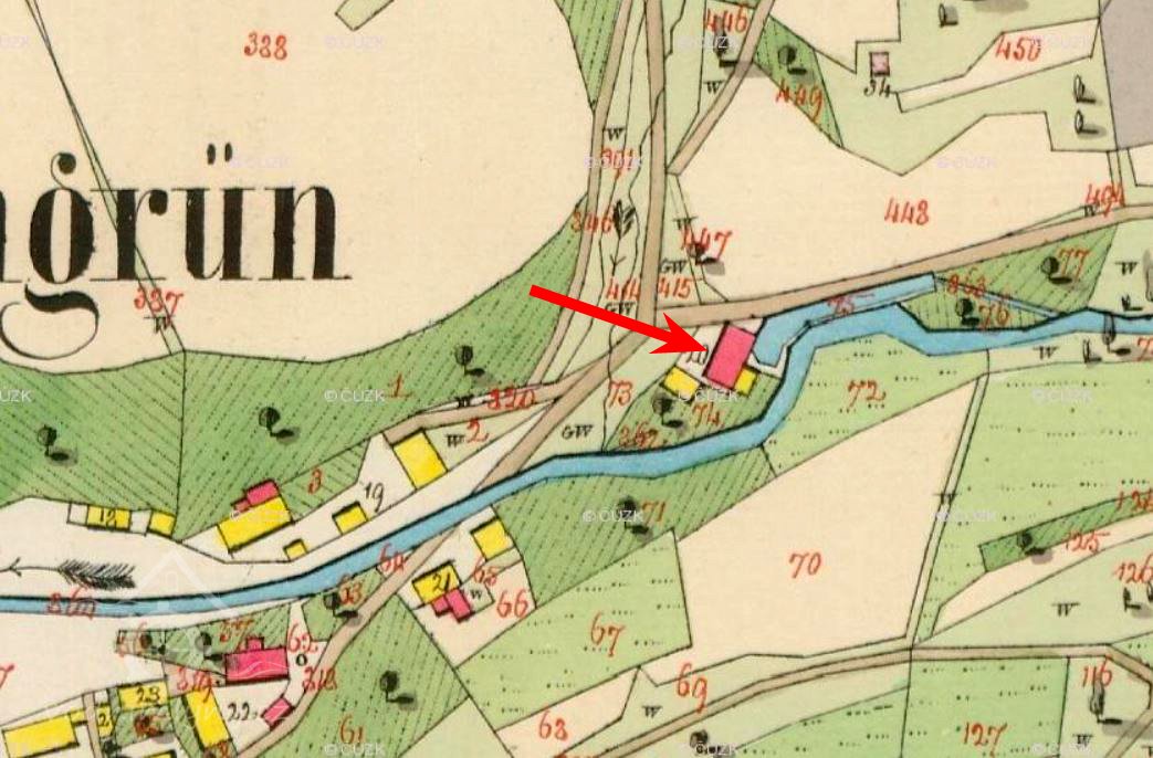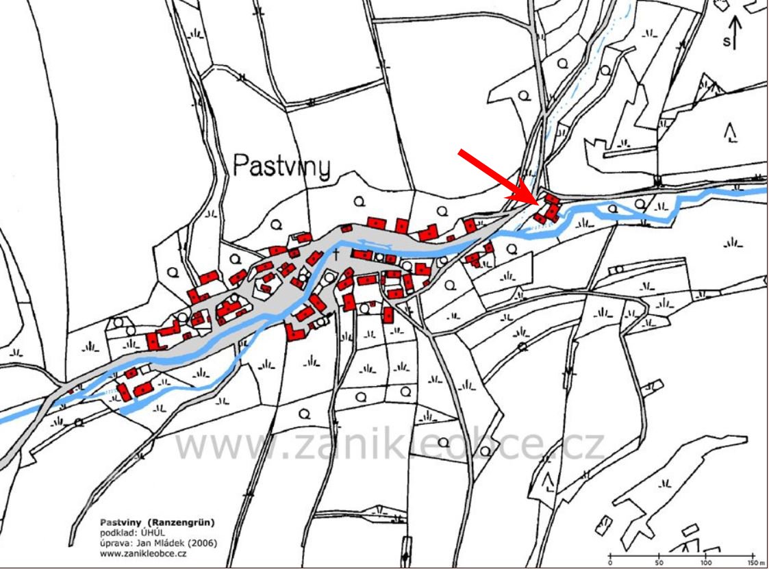 Zaniklý mlýn se nacházel v dnes již zaniklé obci Pastviny (Ranzengrün) na území Vojenského újezdu Hradiště.