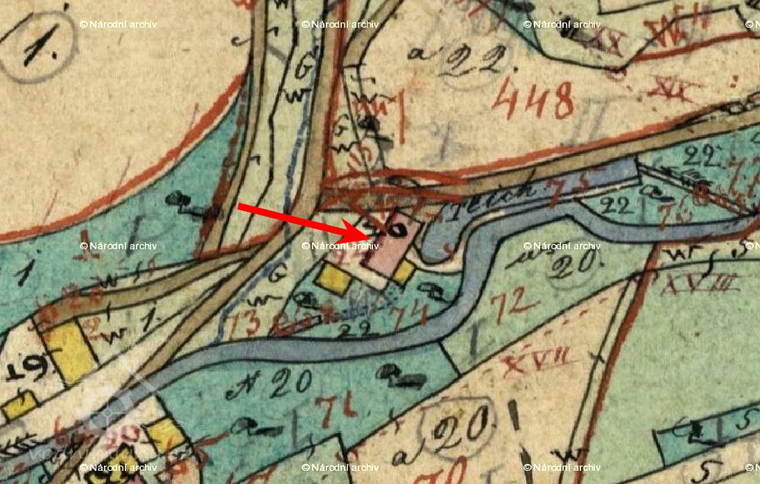 Popis1930: 1 kolo na svrchní vodu, hltnost 0,065 m3/s, spád 4,3 m, výkon 2,5 HP