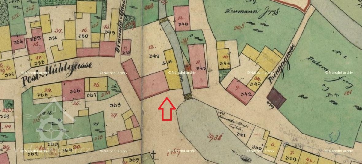 1651 Soupis poddaných podle víry - mlýn na předměstí Na kameni: mlynář Jakub Třeštík (35 let), manželka Kateřina (50), oba katolíci