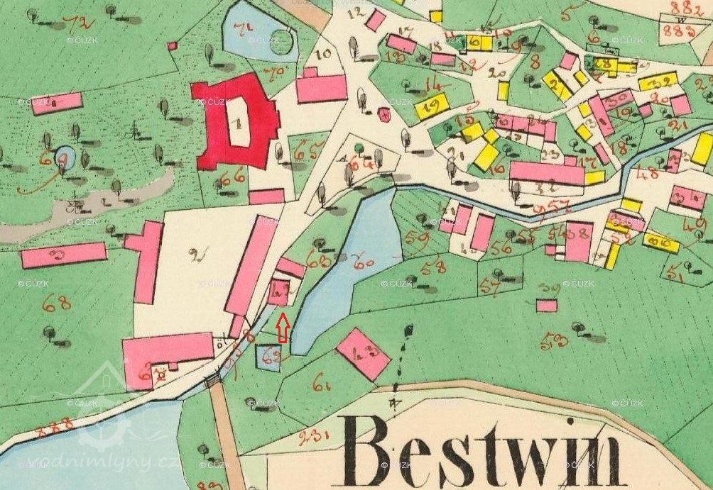 Přímo nad usedlostí na pozemku č. 60 byl rybník. Odtok se vléval do nedalekého, níže položeného Zástodolního rybníka.