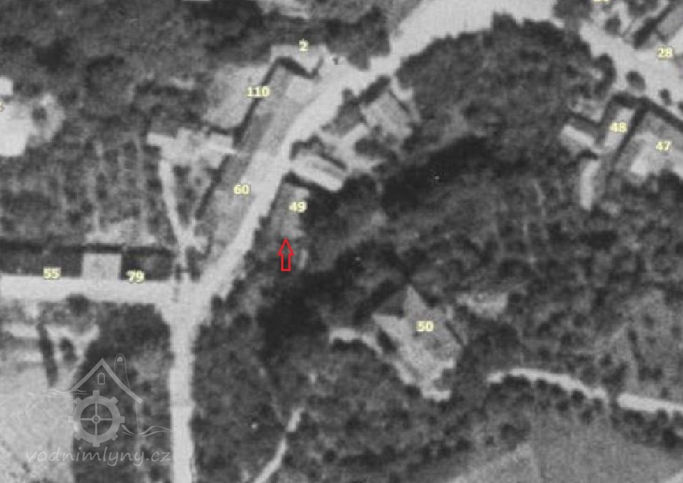 V 2. polovině 19. st. zde kromě zemědělské usedlosti fungoval také mlýn. Vodní kniha ze 70. let 19. století se takto zmiňuje o mlýnu: „Tímto kolem se žene šrotovník a popřípadě mlýn, který se nalézá ve mlýně čp. 49“.