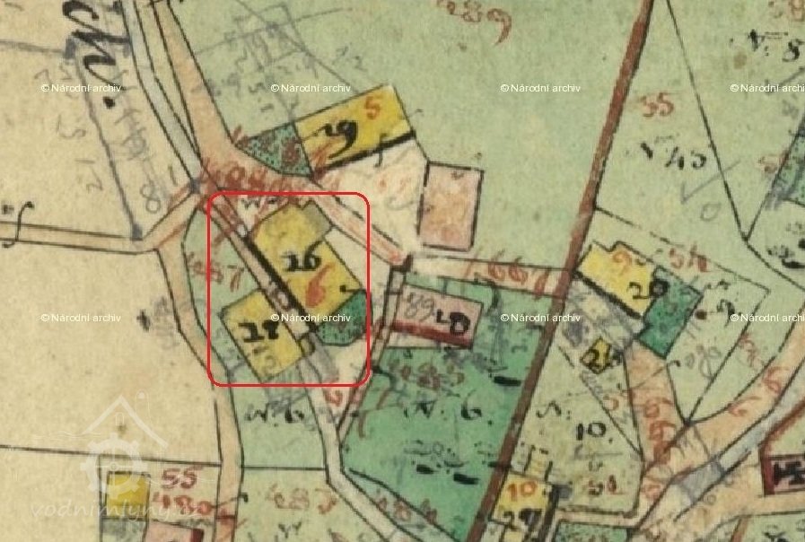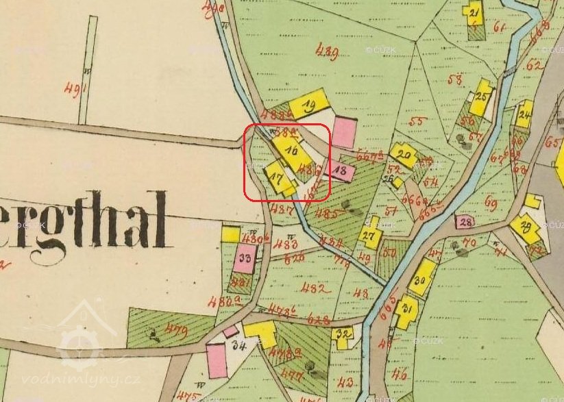 Vodní kniha 1870: jedno vodní kolo na vrchní vodu o průměru 6,34 m.
