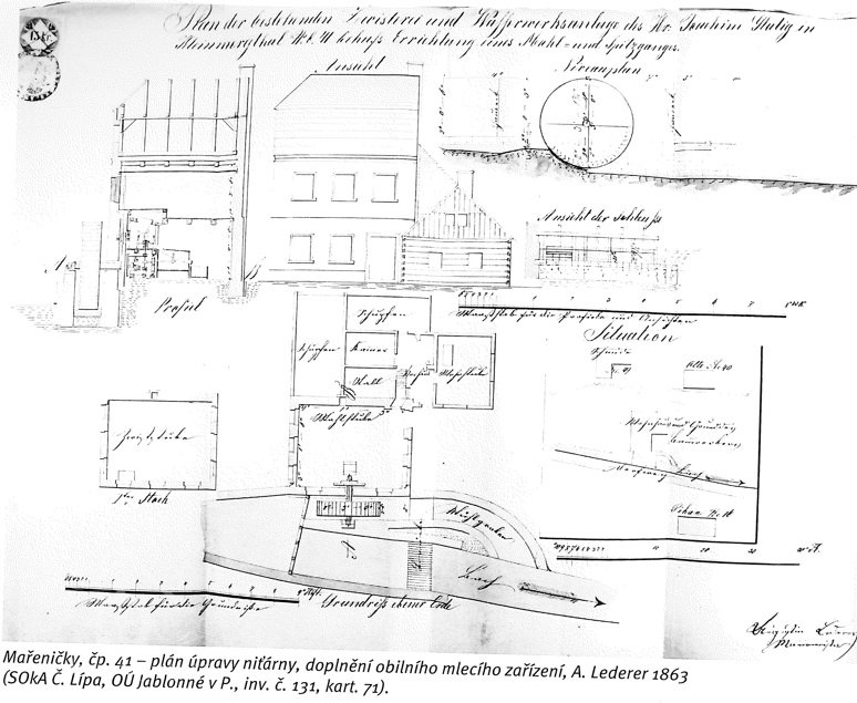 Z roku 1862 pocházejí plány, které řeší zvětšení výrobní části (Zwiststube) včetně rozšíření do patra. Není tedy vyloučeno, že je niťárna o pár let starší /maximálně z konce 50. let 19. stol.) Podle předložených plánů je patrné, že přestavba proběhla v plném rozsahu. Do přízemí při návodní stěně mělo být nově osazeno mlecí složení, v patře zůstávala niťárna. Výrobní číst byla v každém podlaží jednoprostorová a ukončená polovalbovou střechou. Přístup zajišťovaly vstupy z přízemí a ze síně obytného křídla. To mělo tradiční trojdílnou celoroubenou dispozici se světnicí, střední síní, komorochlévním dílem, na který navazovala stodola a k zadnímu průčelí přistavěná kolna.