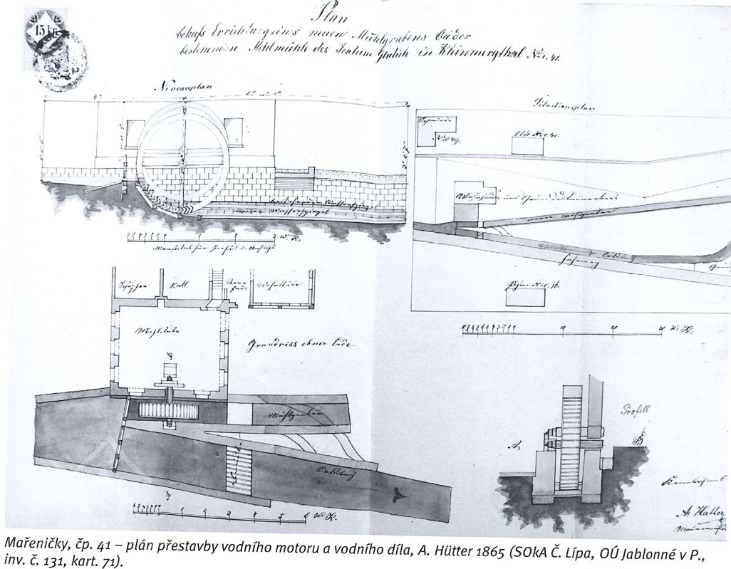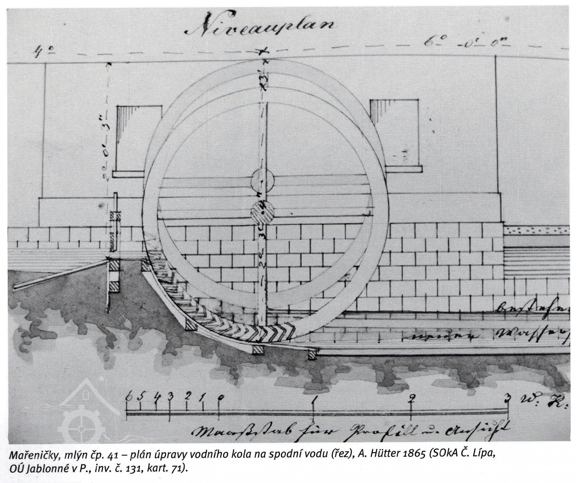 Rok 1862 - nové vodní kolo na spodní vodu o prům. 4,7 m umístěno blíže k objektu