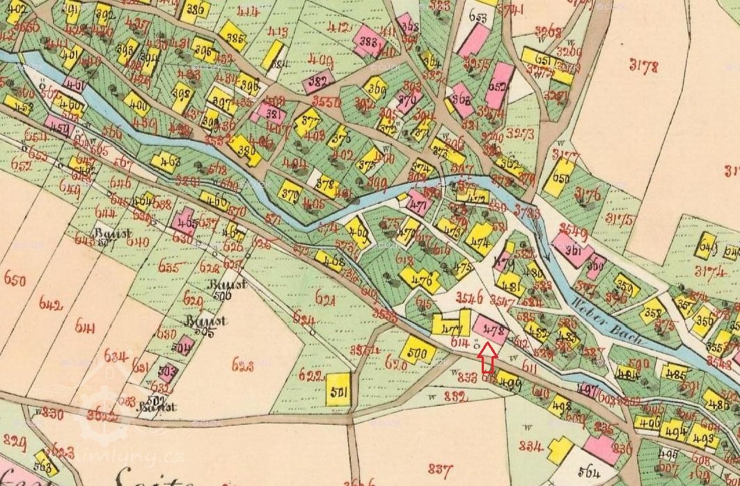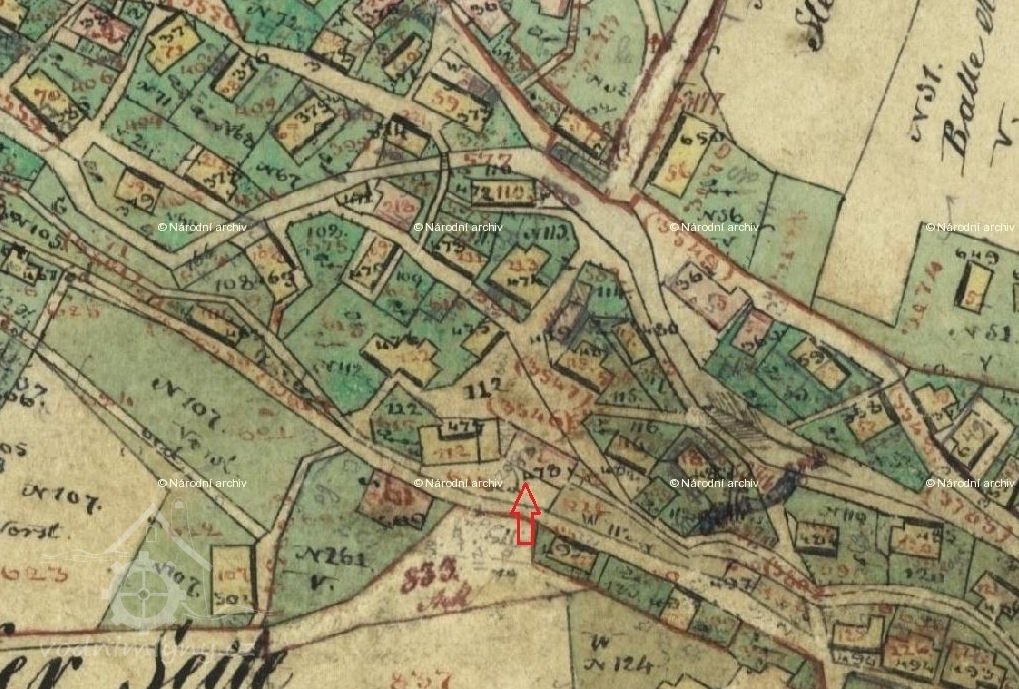 Mlýn s pilou stál jv od dnešního 112/II, pozemek je nezastavěný.
