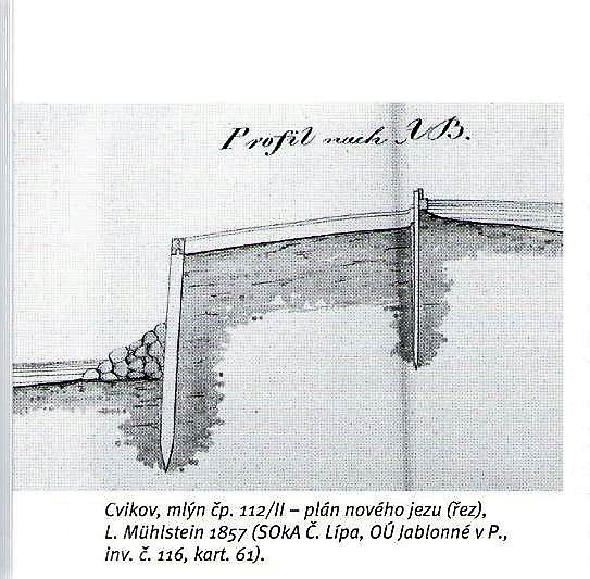 Těleso jezu zmizelo za regulace, za obytným domem čp. 112/II dosud patrná prohlubeň po náhonu.