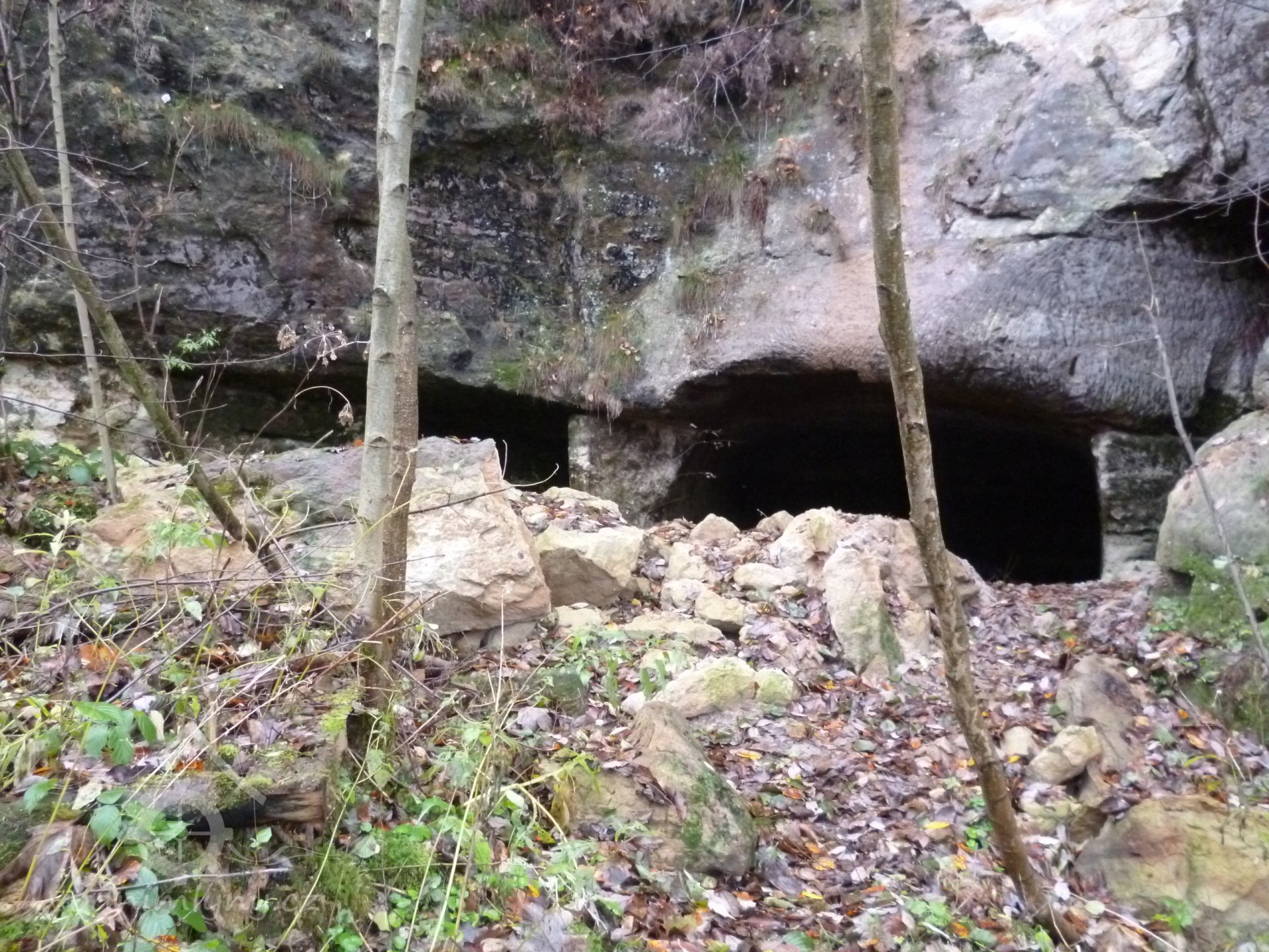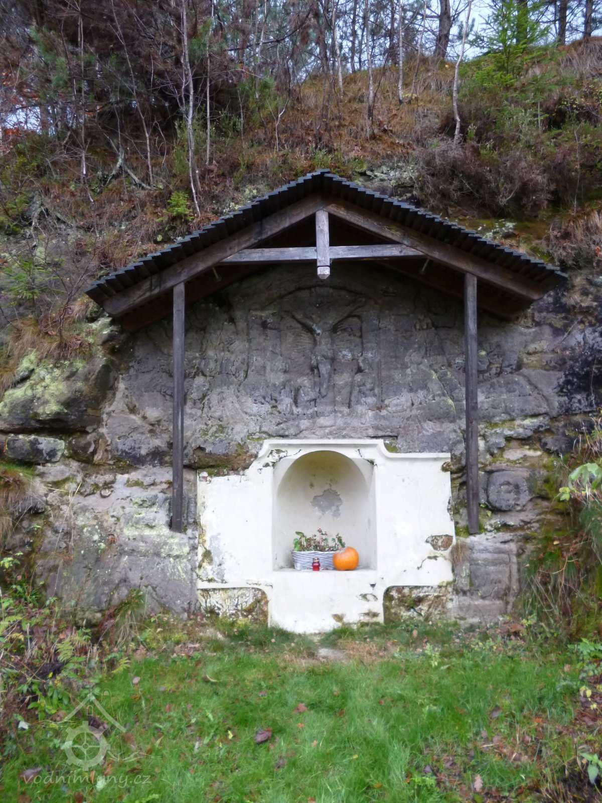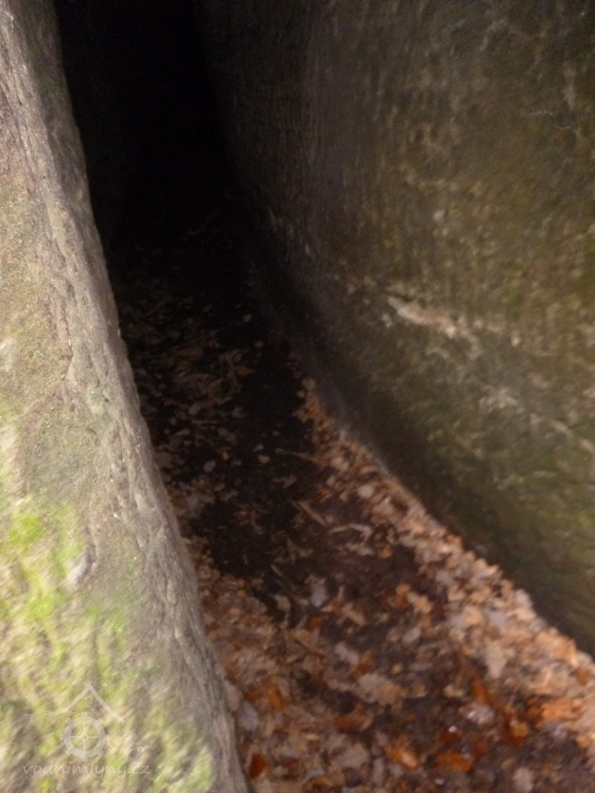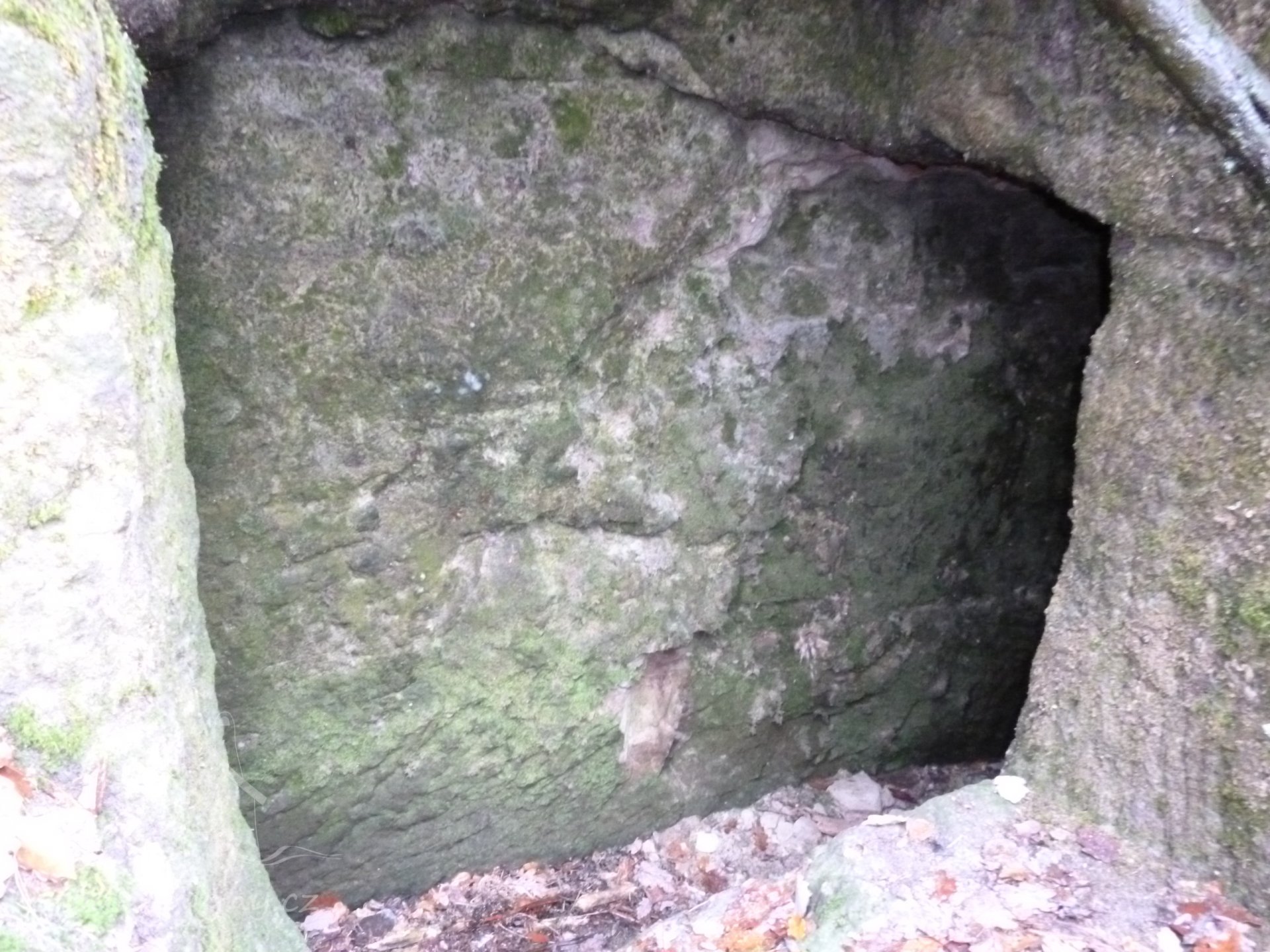1874 normováno - cejch ze železné skoby s nápisem "F.K. 1874" (Franz Kreibich) usazený na skále před mlýnem u skalního nároží.