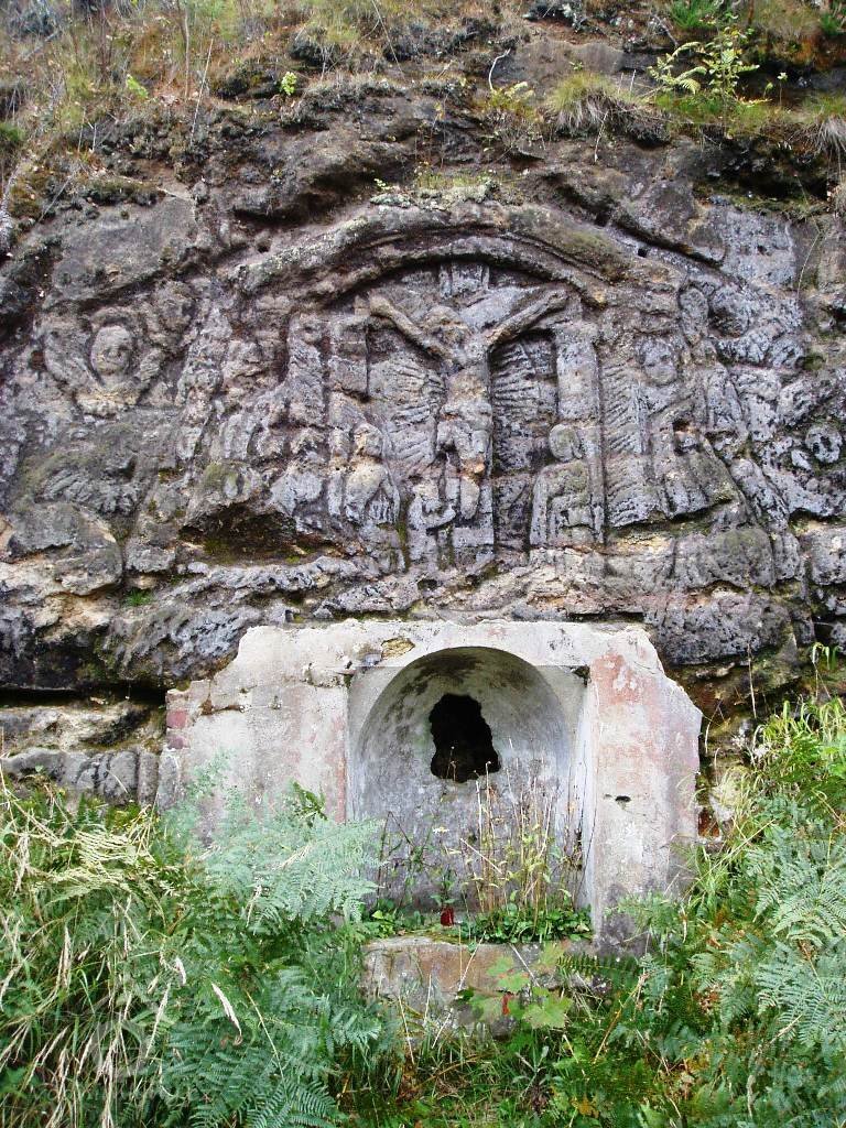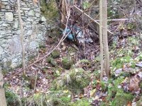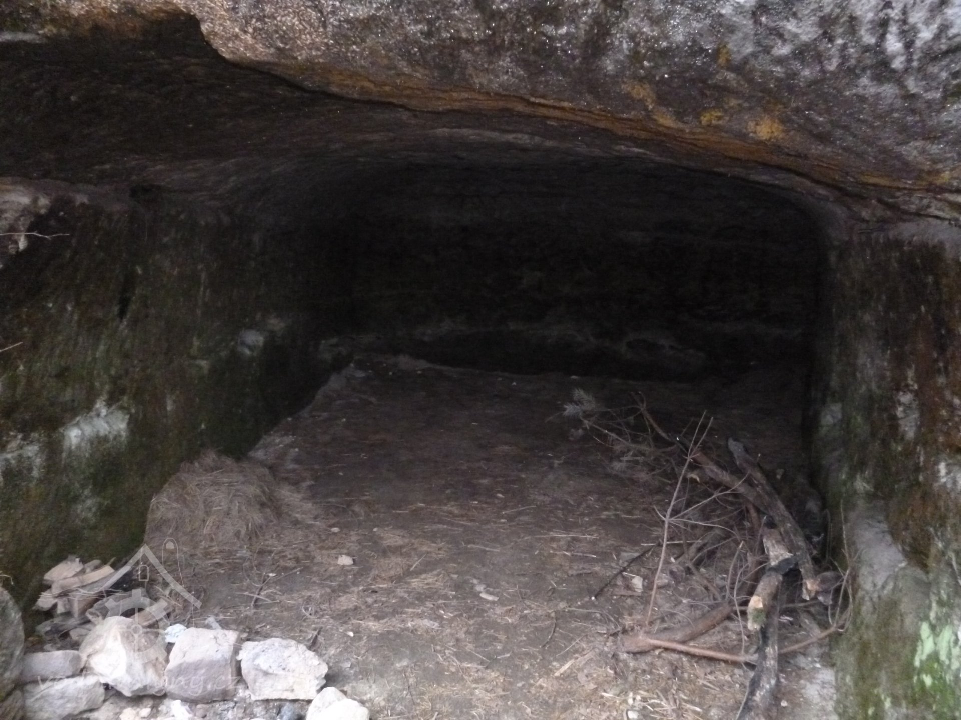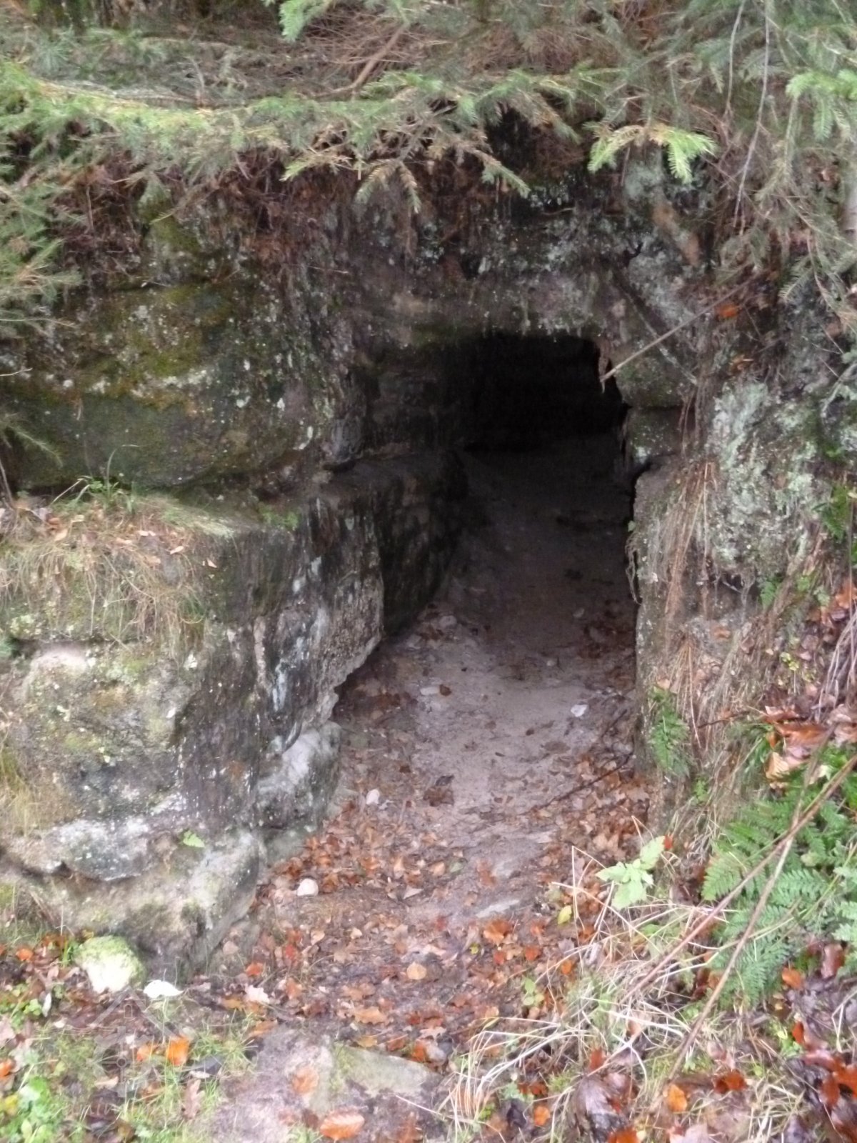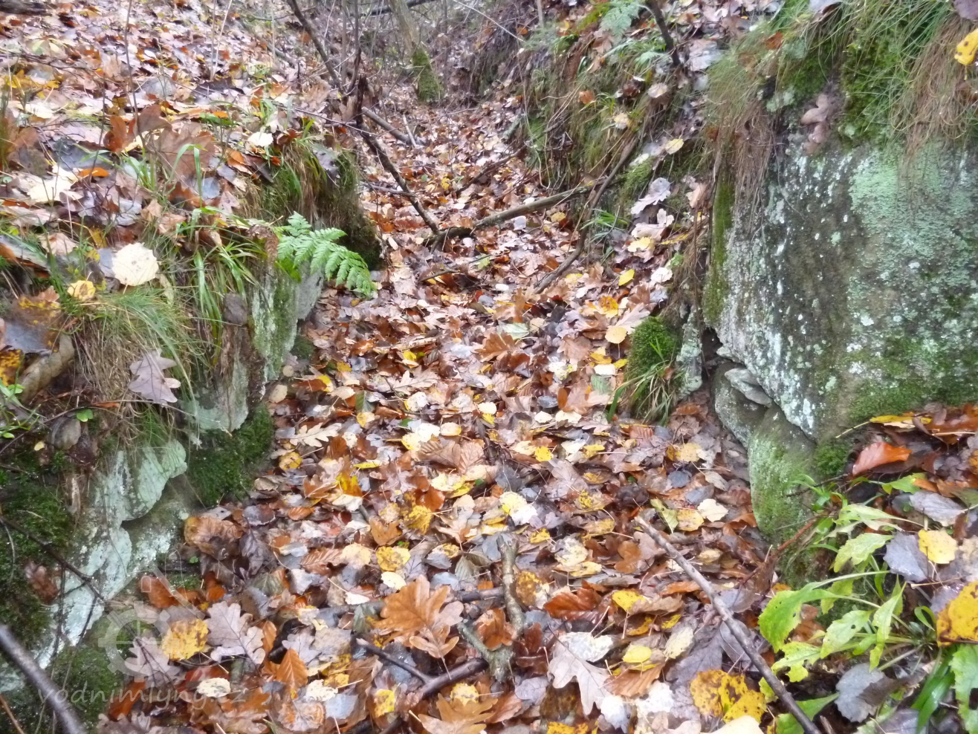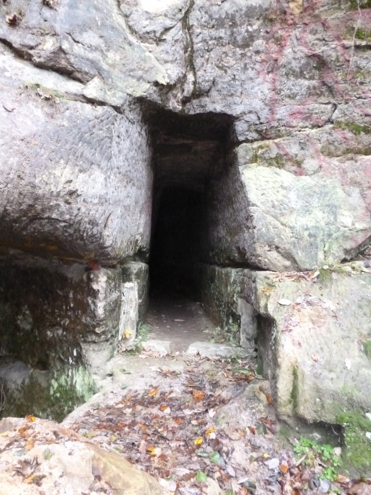 1874 normováno - cejch ze železné skoby s nápisem "F.K. 1874" (Franz Kreibich) usazený na skále před mlýnem u skalního nároží.