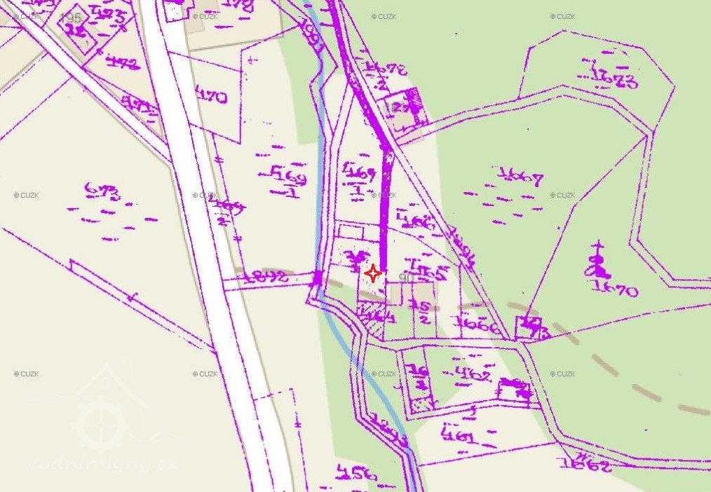 Mlýn stál v severní části obce Mařenice při hranici s katastrem obce Krompach, východně od silnice na Juliovku, pod mlýnem Krompach-Juliovka čp. 1, asi 100 m od skalní stěny, na které je vytesán motiv ukřižování.