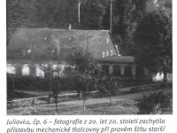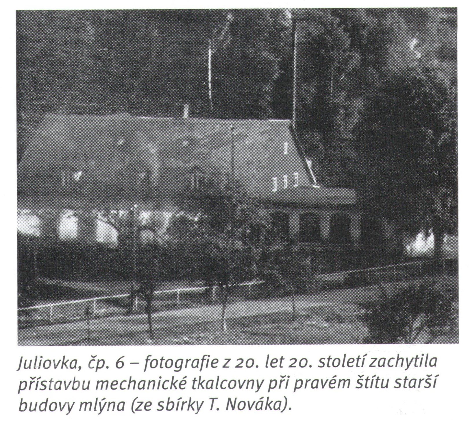 1918-20: Ke starší přízemní obdélné stavbě se sedlovou střechou přistavěna nižší část s pultovou střechou nízkého sklonu, atikou na pohledové straně (na omítce nápis Mech. Weberei) a továrními okny.