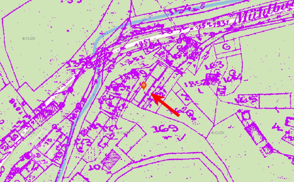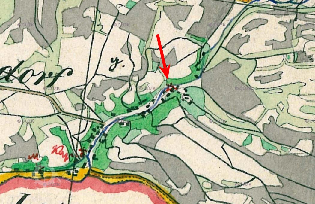 Mlýn se nacházel v severovýchodní části obce u Petrovského potoka, asi 650 m SV od kaple.