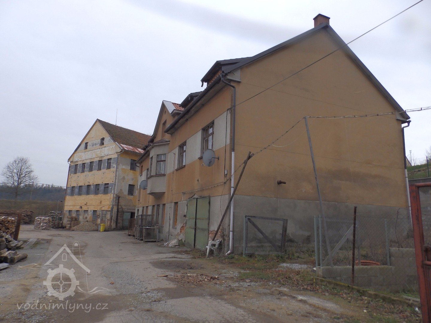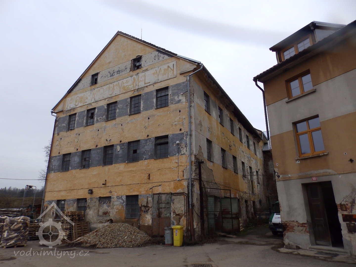 Velký mlýn industriálního typu, patrové obytné křídlo v sousedství.